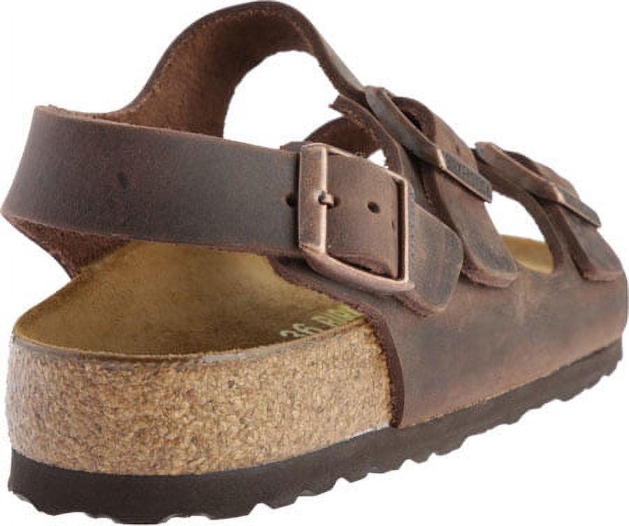 About the brand: Iconic and sustainable designs that are always on-trend. Milano Leather Sandal in Habana leather and bronze-tone hardware Original Birkenstock suede-lined natural cork footbed that molds and shapes to your foot, featuring pronounced arch support, deep heel cup, and roomy toe box. Man-made sole Made in Germany