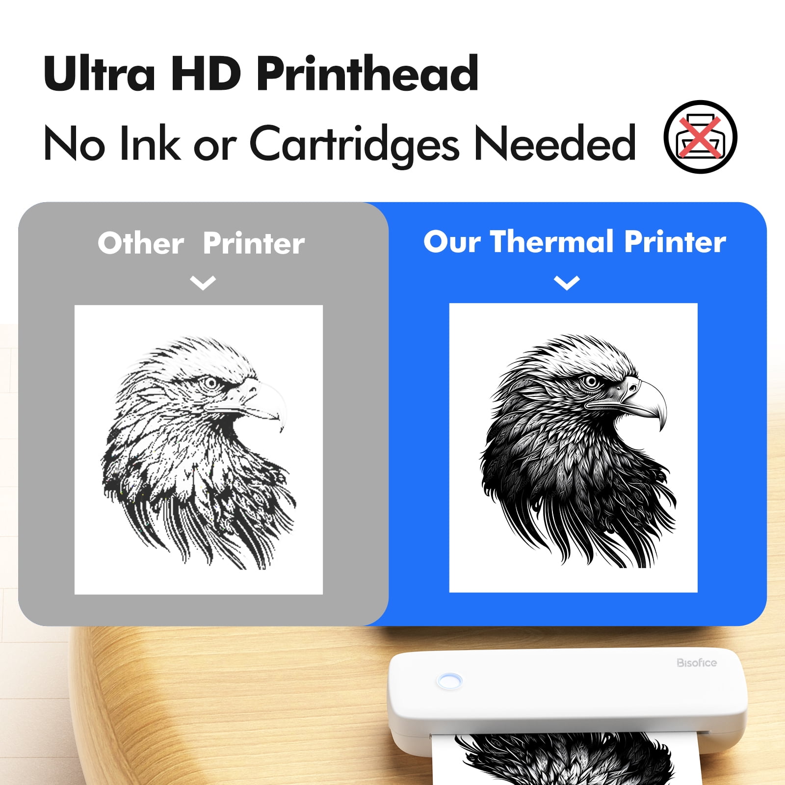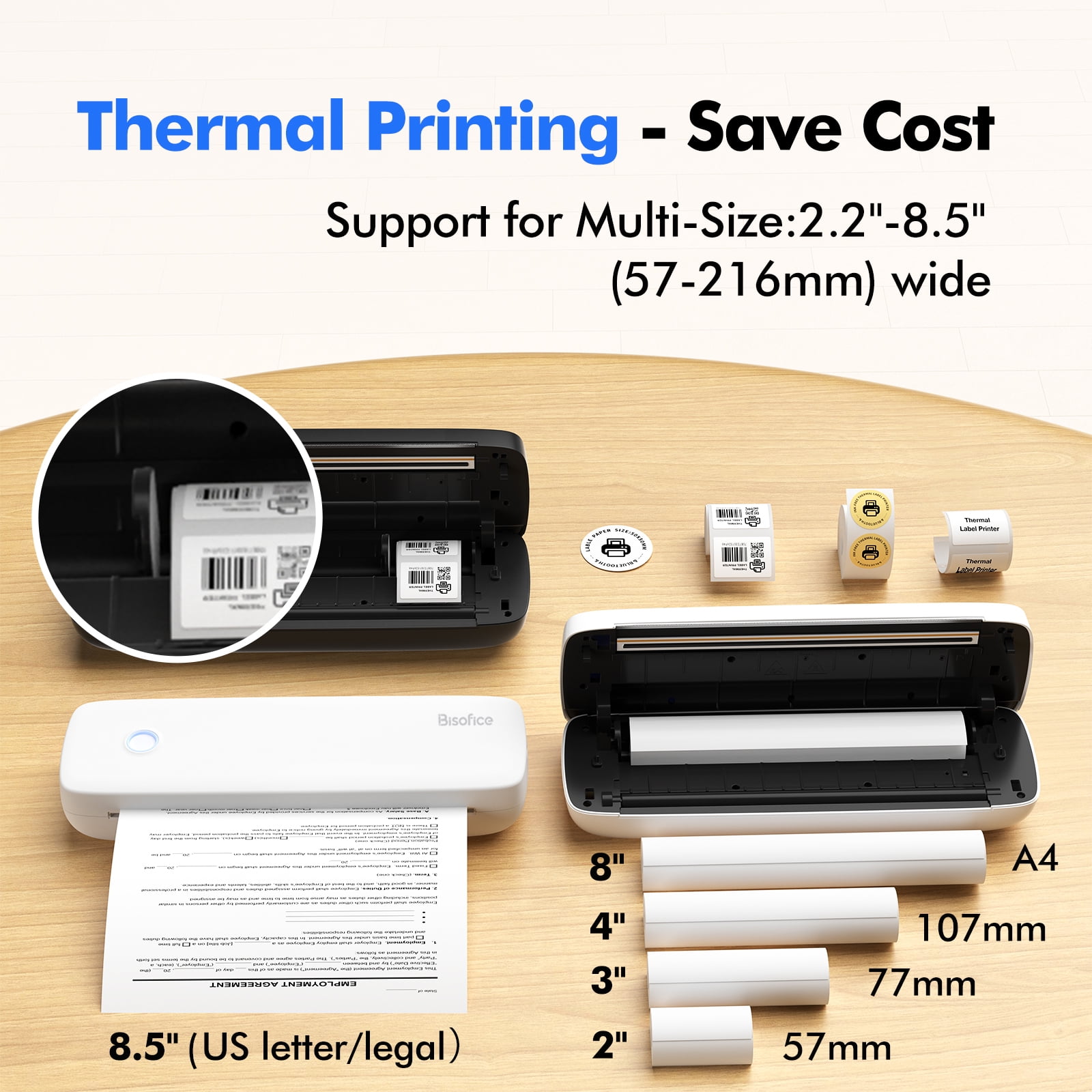 Bisofice Portable Printers Wireless for Travel, Bluetooth Thermal Printer Compatible with iOS, Android, Laptop, Inkless Mobile Printer for Office, Home, School