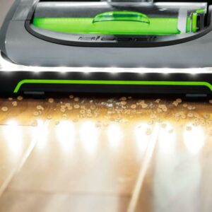 – LED Lights. Bright wide range LED lights illuminate hard floors to assist in seeing fine dirt and debris for effective cleaning