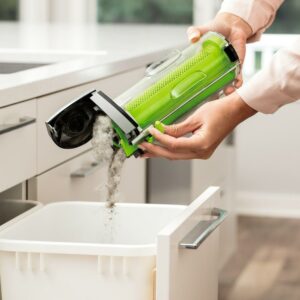– Easy Empty Dirt Bin. Removable dirt bin with built-in Easy Empty slider that pushes out debris, hair and dirt for a mess free empty
