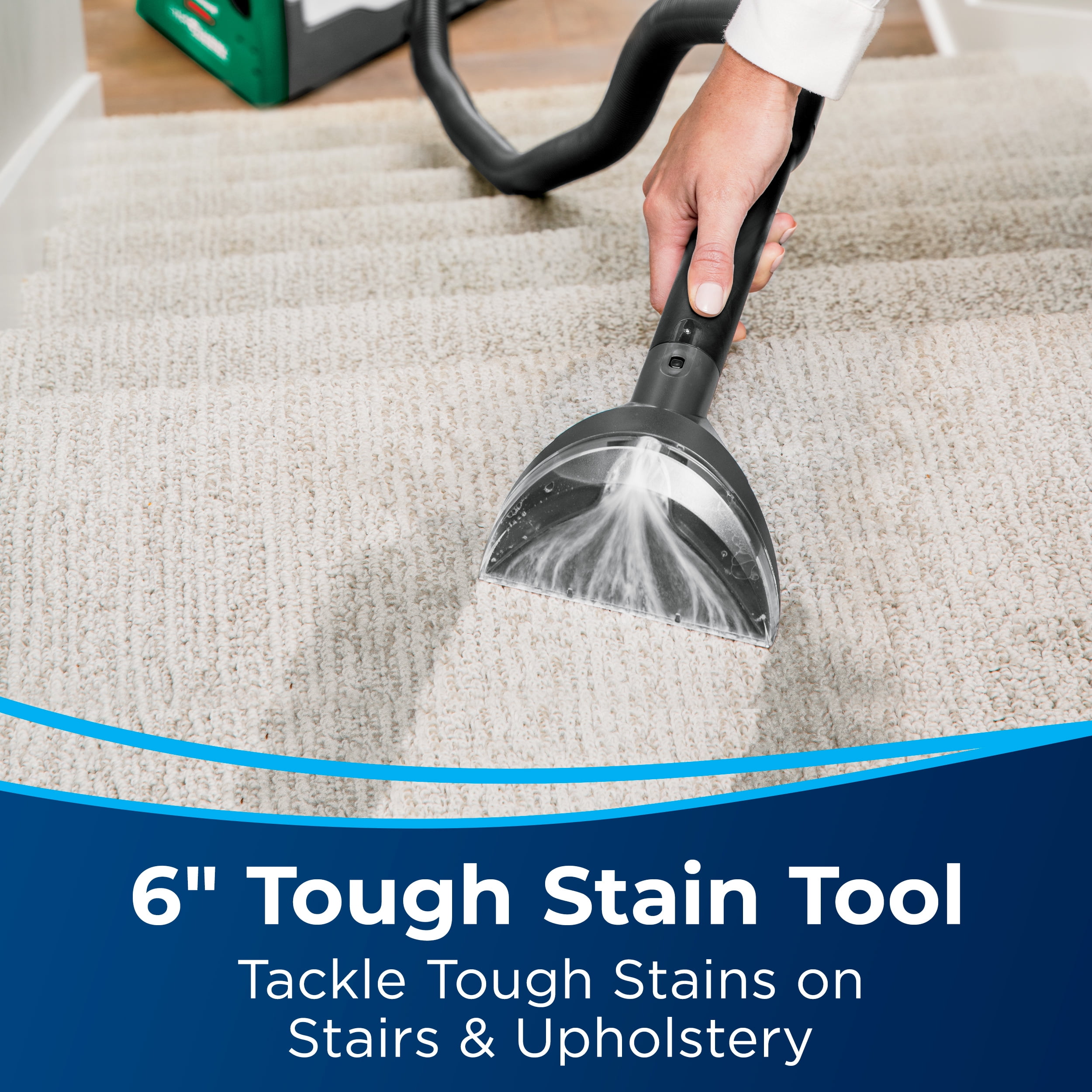 Get professional grade cleaning results with BISSELL® Big Green® carpet cleaner. This machine outcleans the leading rental.* It features a DirtLifter® PowerBrush with 8 rows of bristles and works with powerful suction to remove embedded dirt and stains. Plus, you get a 9′ Long Reach Hose and 6″ Tough Stain Tool to tackle spots on stairs and upholstery. The adjustable handle lets you comfortably maneuver the machine, and the two large tanks keep clean and dirty water separate. Use with BISSELL PRO MAX Clean + Protect formula to remove tough, ground-in dirt and stains. Plus, every purchase of this machine helps save pets! BISSELL proudly supports BISSELL Pet Foundation® and its mission to help save homeless pets. When you buy a BISSELL product, you help save pets, too. We’re proud to design products that help make pet messes, odors and pet homelessness disappear.