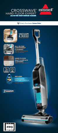 Every Purchase Saves Pets™. BISSELL proudly supports BISSELL Pet Foundation® and its mission to help save homeless pets. Vacuum and Wash at the Same Time. Powerful Vacuum + Convenient Mop for all-in-one cleaning saves you time. Lightweight and Easy to Maneuver. Self-Propelled Steering makes for easy maneuverability across hard floors with minimal effort. Hard Floor Cleaning. Hard Floor Brush Roll cleans sealed wood, tile, linoleum, laminate, and other sealed hard floors. Clean and Sanitize. Hard Floor Sanitize Formula eliminates 99.9% of bacteria1. Two-Tank Technology. Keeps clean and dirty water separate so you always clean with fresh water + solution. Self-Cleaning Cycle. Includes Rinse and Cleanout Storage Tray to ensure your machine is clean after each use. 2 Year Limited Warranty. 1Kills 99.9% of Enterobacter aerogenes (ATCC 13408) and Staphylococcus aureus (ATCC 6538).