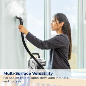 – 3 Cleaning Mode Settings. SteamWash for tough, oily messes; Steam for refreshing upholstery and curtains; and Wash for enzyme-based stains like pet accidents.