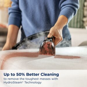 – Cleans up to 50% better with HydroSteam Technology. Steam, powerful suction and OXY formula remove tough, stuck-on and oily messes from carpet, upholstery and other surfaces.