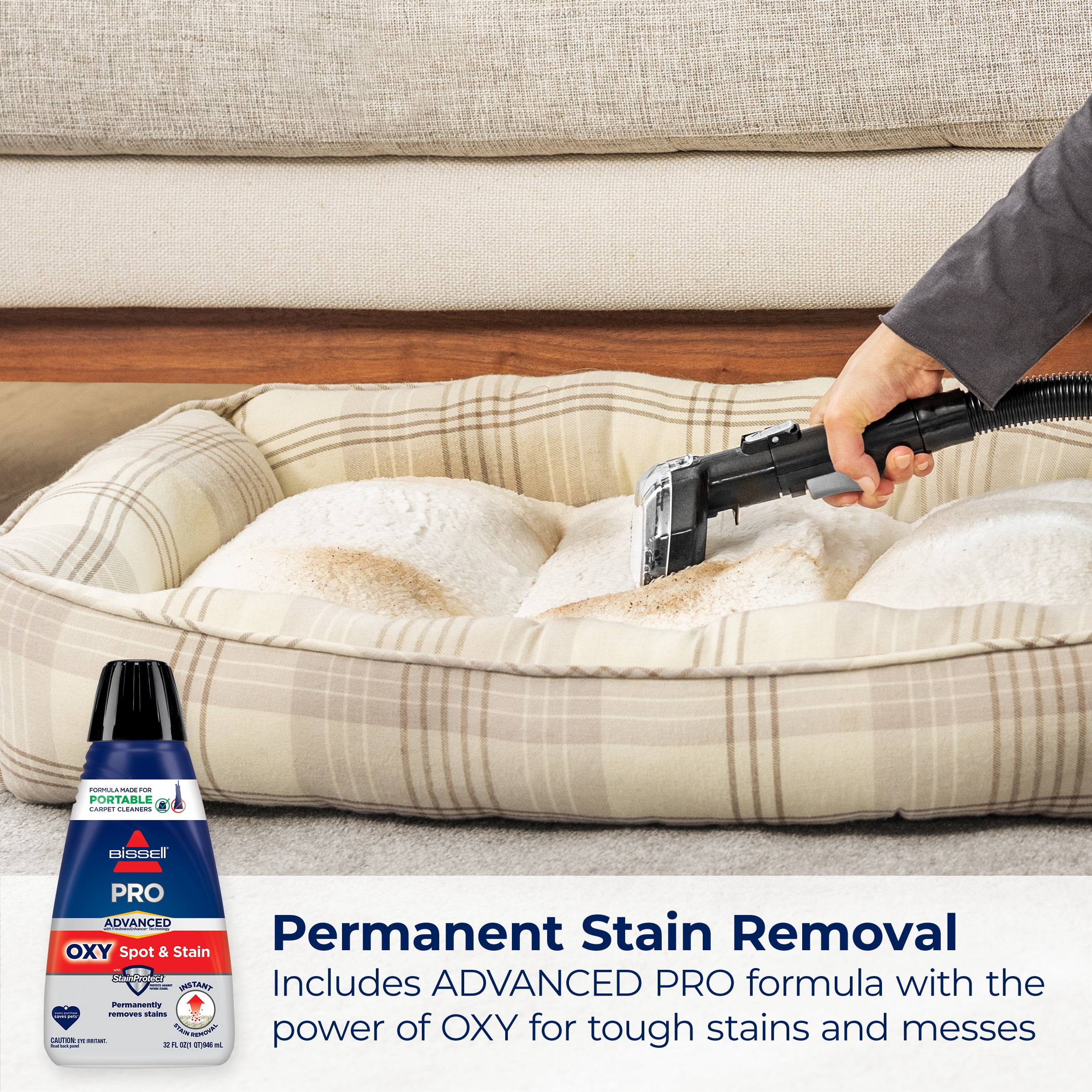 Every Purchase Saves Pets™. Every purchase makes it possible for BISSELL to continue our support of BISSELL Pet Foundation® and its mission of saving pets in need. UP TO 50% BETTER CLEANING WITH HYDROSTEAM® TECHNOLOGY. Steam, powerful suction and OXY formula remove set-in stains and stuck-on, oily messes from carpet, upholstery and other surfaces. 3 CLEANING MODES. SteamWash™ mode for tough, sticky, oily messes; Steam for refreshing upholstery and curtains; and Wash for enzyme-based stains like pet accidents. FAST DRYING. Dries upholstery in about 30 minutes1 so you can enjoy clean, dry furniture quicker. MULTI-SURFACE VERSATILITY. Tackle tough stains & dirt on carpets, upholstery, stairs and auto interiors with the 3” Tough Stain Tool. PERMANENT STAIN REMOVAL. Includes 8 oz. BISSELL® ADVANCED PRO OXY Spot & Stain Formula with StainProtect® Technology to protect against future stains and the power to remove the toughest stains and messes. EASY TO USE. Dual-tank system with 64 oz. clean tank capacity and large easy to remove dirty tank. INCLUDES: 3” Tough Stain Tool, 8 oz. BISSELL® ADVANCED PRO OXY formula, and 3-year limited warranty. *1 In Steam Only Mode. Reference instructions in user guide. Tested on new polyester. Results may vary.