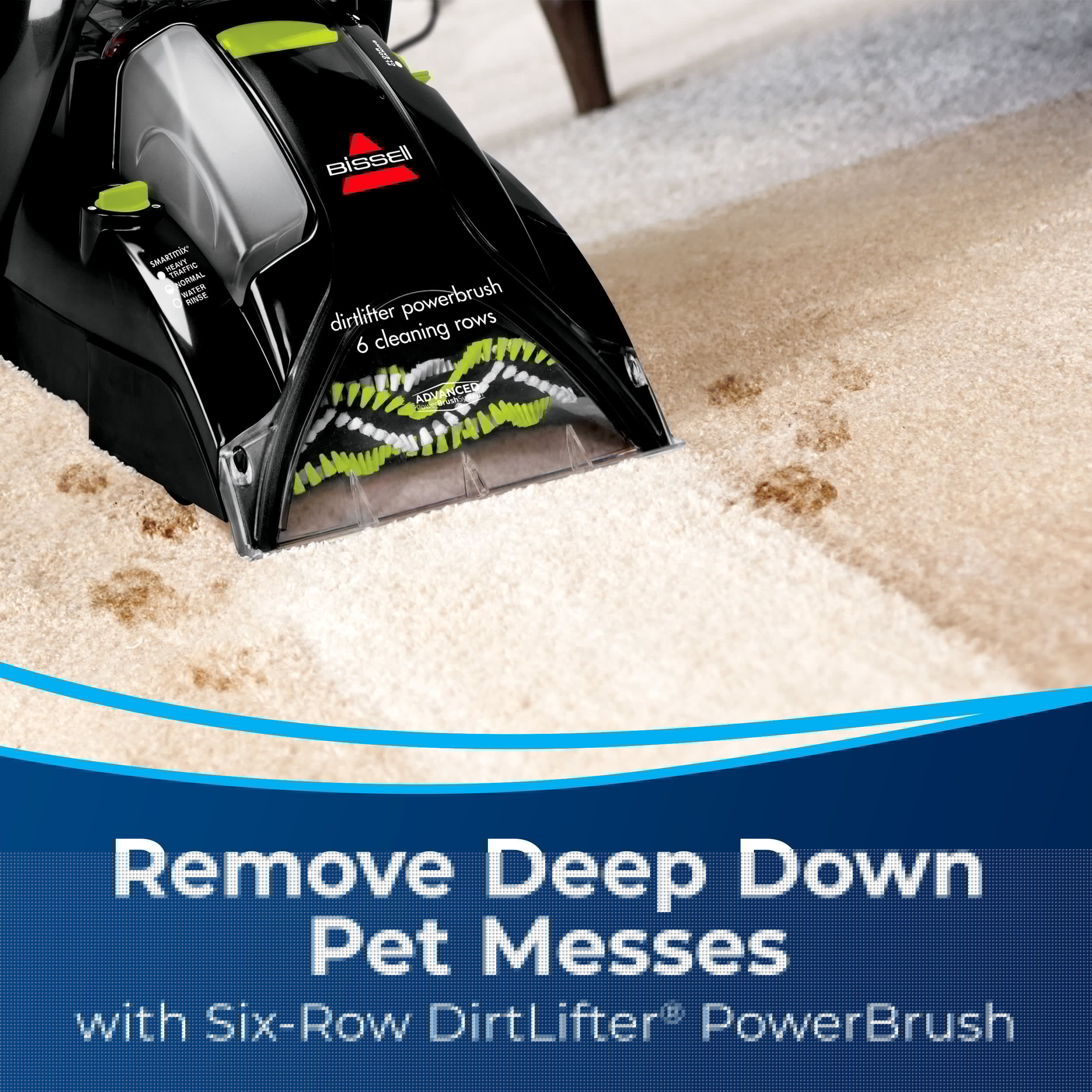 - Remove Deep Down Pet Messes. Six-row DirtLifter PowerBrush and powerful suction