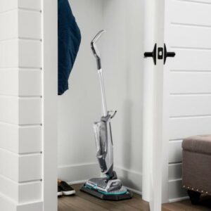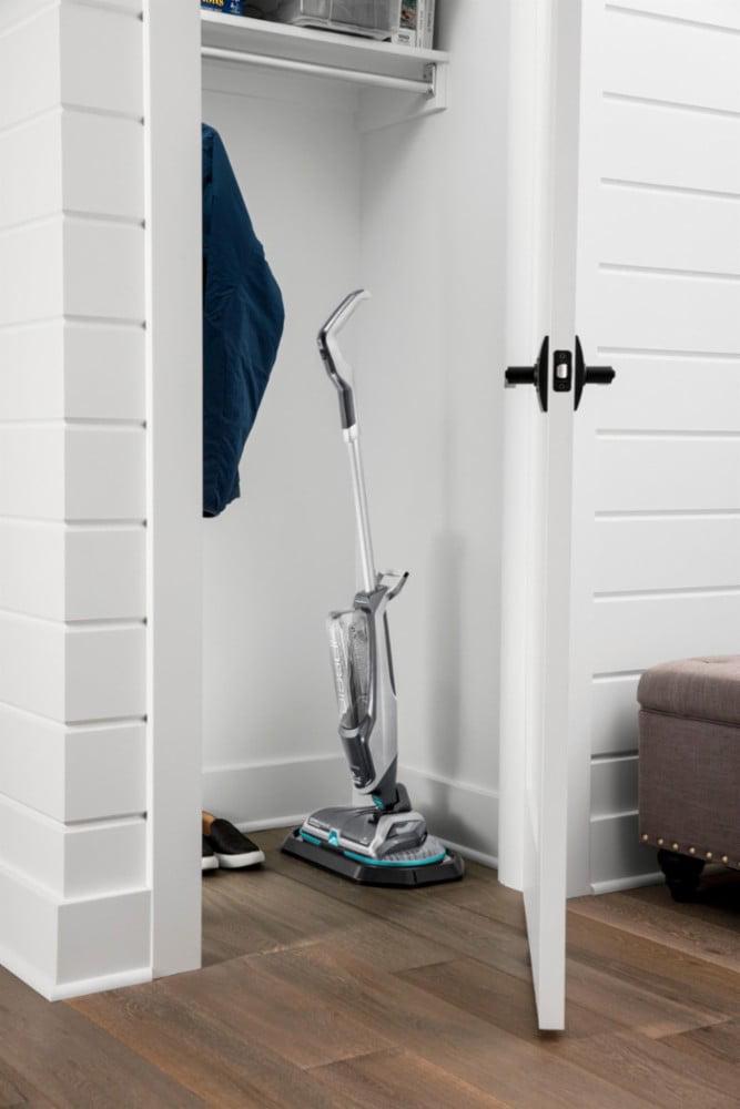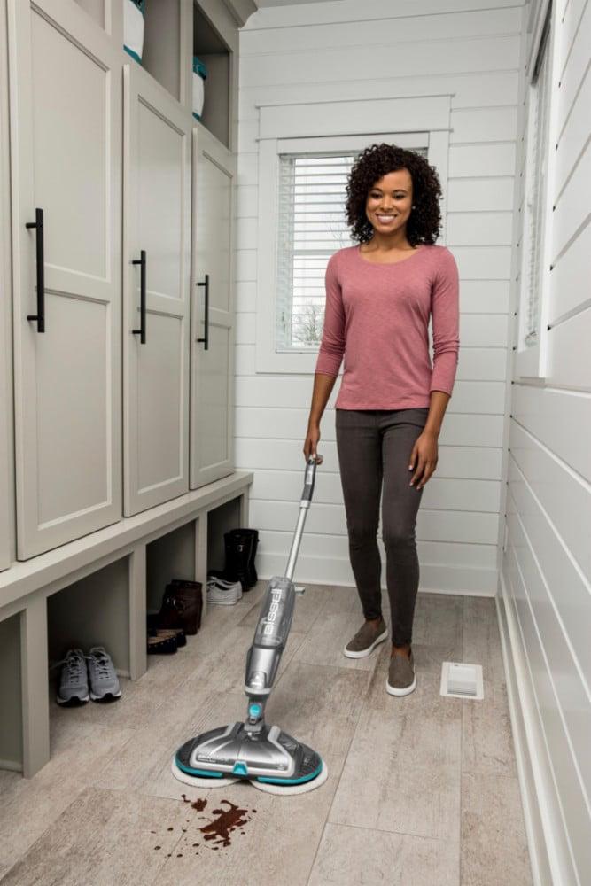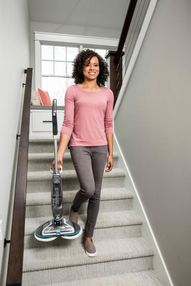 – Powerful hard floor spin mop reduces cleaning efforts by scrubbing floors for you