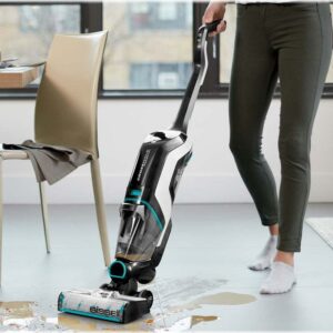 BISSELL CrossWave Cordless Max multi-surface cleaner combines cleaning tasks to let you vacuum and wash at the same time. Enjoy up to 30 minutes* of cordless cleaning power thanks to the 36V lithium-ion battery, so you can clean your home without being tied to an outlet. Plus, multi-surface cleaning capabilities let you switch from sealed hard floors to area rugs in an instant. CrossWave Cordless Max multi-surface cleaner also features improved edge cleaning** for cleaning debris like pet hair along baseboards and in corners. Two-Tank Technology keeps clean and dirty water separate, so unlike mopping, only clean water and formula touch your floors. The self-cleaning cycle cleans the brush roll and inside of the machine after you’re finished, so there s less clean-up after cleaning.