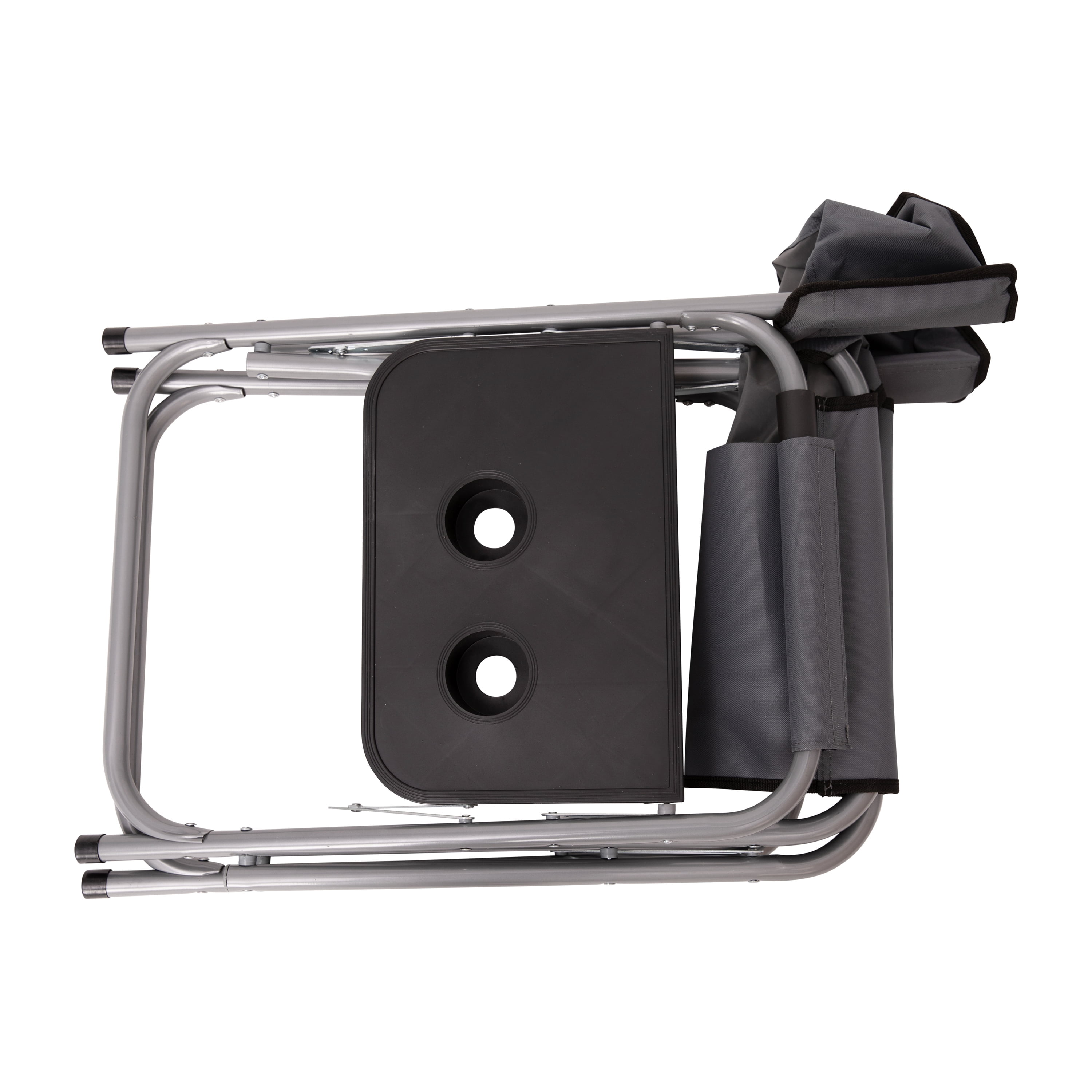 BizChair Folding Gray Director’s Camping Chair with Side Table and Cup Holder – Portable Indoor/Outdoor Steel Framed Sports Chair