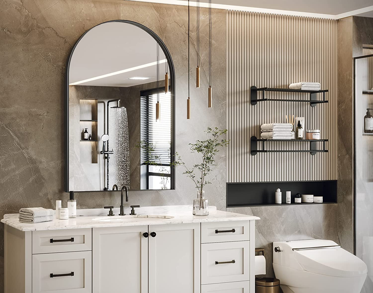 Scifil black arched wall mirror is designed with elegance and fashion to enhance and expand your space. Our bathroom vanity arch wall mirror uses high-grade metal materials and HD Silver Mirror. The HD arch mirror makes the arched vanity wall mirror 35% brighter than the traditional mirror, and reflectivity increases to more than 90% without any visual distortion. The black arched wall mirror is perfect for brightening common areas, such as bathrooms, living rooms, bedrooms, entranceways and foyers, hallways, offices, hotels and more. Hang this black arched bathroom vanity wall mirror to add light and enhance the beauty of your home! Click on the link below for more Scifil Bathroom Mirrors Wall Mirror: Scifil Black Bathroom Wall Mirror, $89.99 Scifil 24 Inch Black Round Bathroom Wall Mirror, $59.99