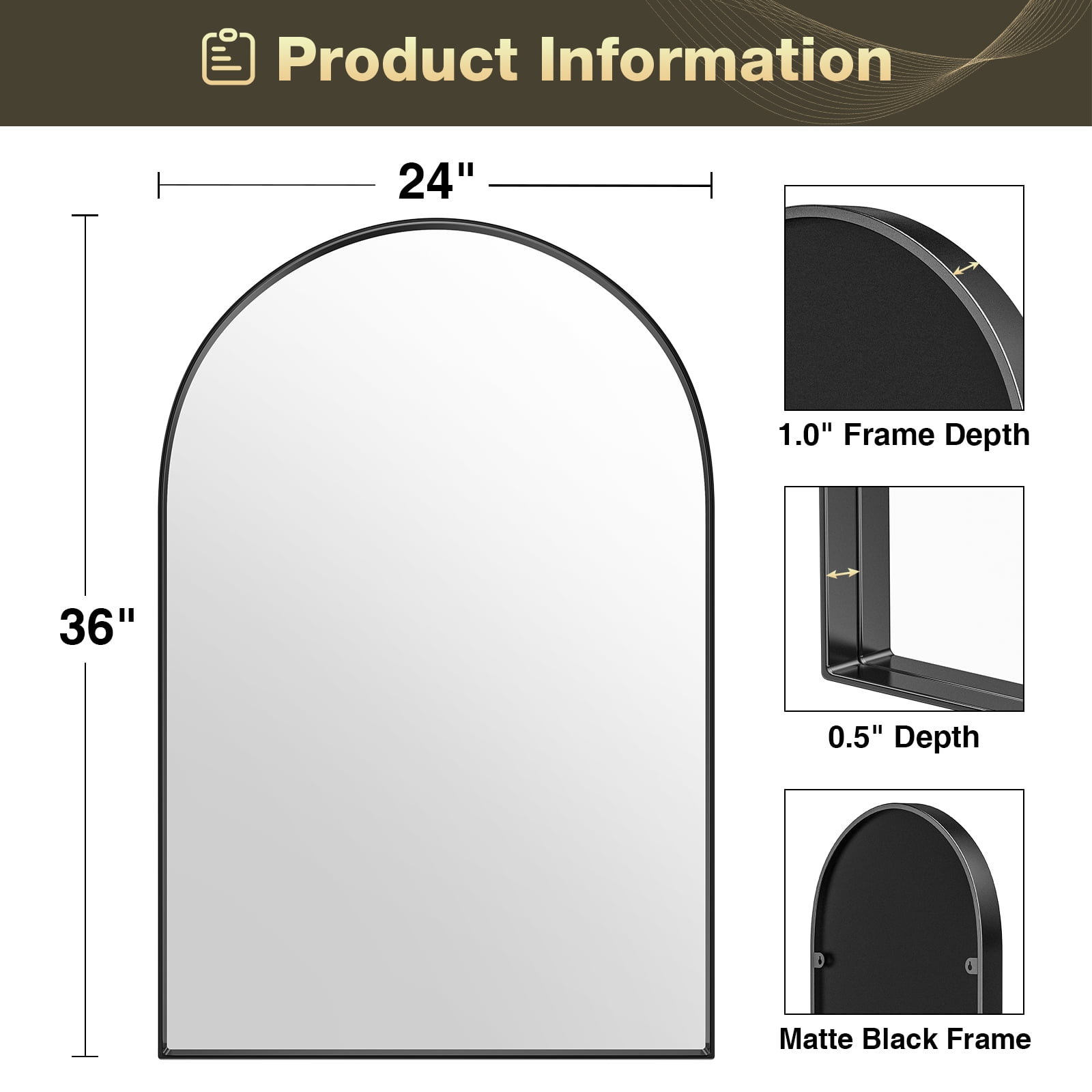 Scifil Black Arched Wall Mirror 24×36 Inch, Modern Arched Vanity Wall Mirror with Metal Frame for Bathroom Living Room Bedroom, Explosion-proof HD Glass Arched Top Wall Mirror: Scifil bathroom arch wall mirror is designed with an arched top frame, adding a soft beauty to the space and making light bounce around the room, thus visually expanding the space. The black arched wall vanity mirror is ideal for making the space more elegant and classy. Explosion-proof HD Glass: Our bathroom vanity mirrors for wall is made of high-end silver mirrors, making the mirror 35% brighter than the traditional mirror, and reflectivity increased to more than 90% without any visual distortion. The wall arch mirror provides a crystal-clear, distortion-free reflection, ensuring the image does not seem distorted at all angles and distances. Sturdy Metal Frame: This arch shape wall mirror is made of high-grade metal material. The mirror arch is surrounded by a “seamless design” excellent steel frame, which protects the mirror from rusting while making the mirror anti-water, shockproof, stable, and hard-wearing. Two-Way Use: This is a stylish and functional arched mirror with a black metal frame. You can choose to mount it to the wall and lean against the wall in your bedroom, living room, bathroom, vanity room, gallery wall, hallway, or salon. Durable Arched Wall Mirror: Scifil arched frame wall mirror is made of explosion-proof membrane glass, making it safer for you and your family. The excellent materials can adapt to different temperatures and humidity for long-lasting use. Safe & Professional Delivery: Our black arched mirror has a safe package including a PE bag, an all-around protective 4mm styrofoam box, and master box packing to ensure safe delivery. Scifil arched mirrors wall mirrors have passed the dropping test, impact test, and heavy pressure test before delivery. No worry about the breakage. Package Includes: 1 * Black Arched Wall Mirror 24*36 Inches