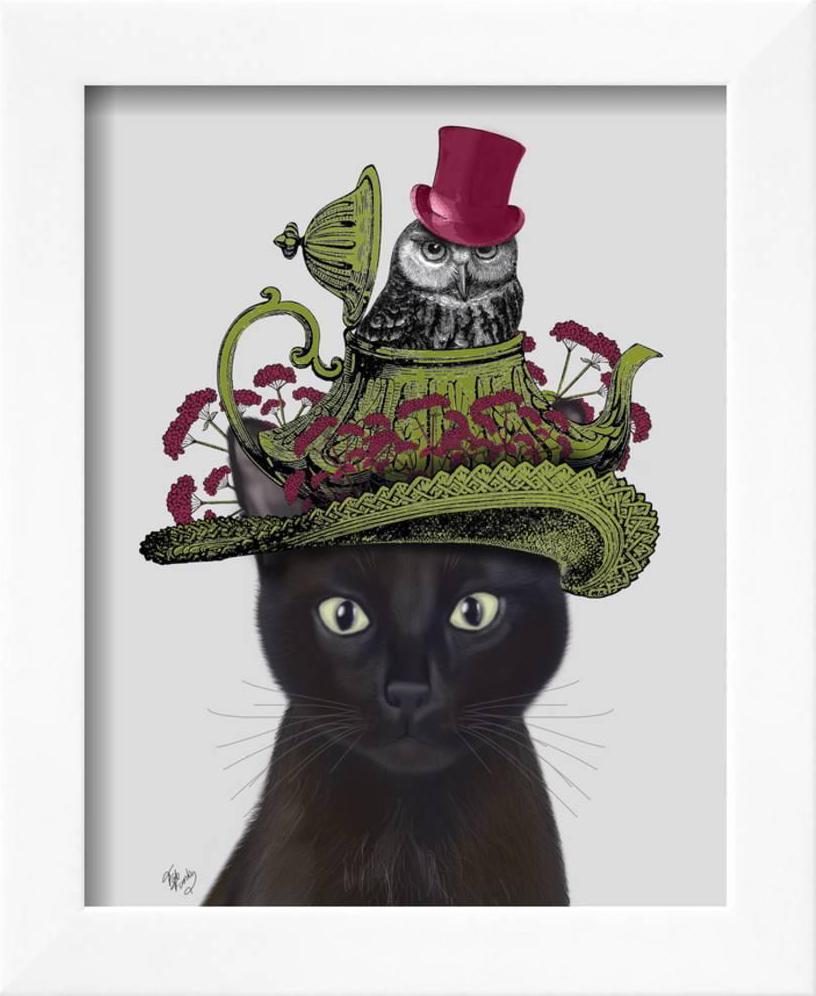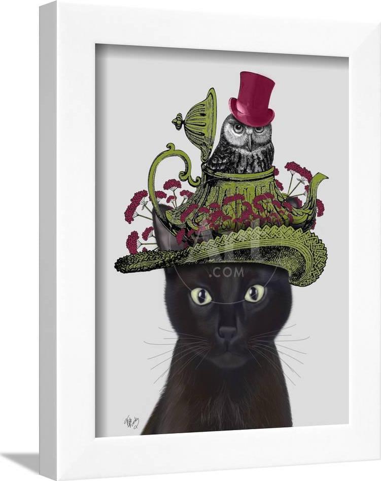 Black Cat with Teapot and Owl, Animals Framed Art Print Wall Art by Fab Funky Sold by Art.Com