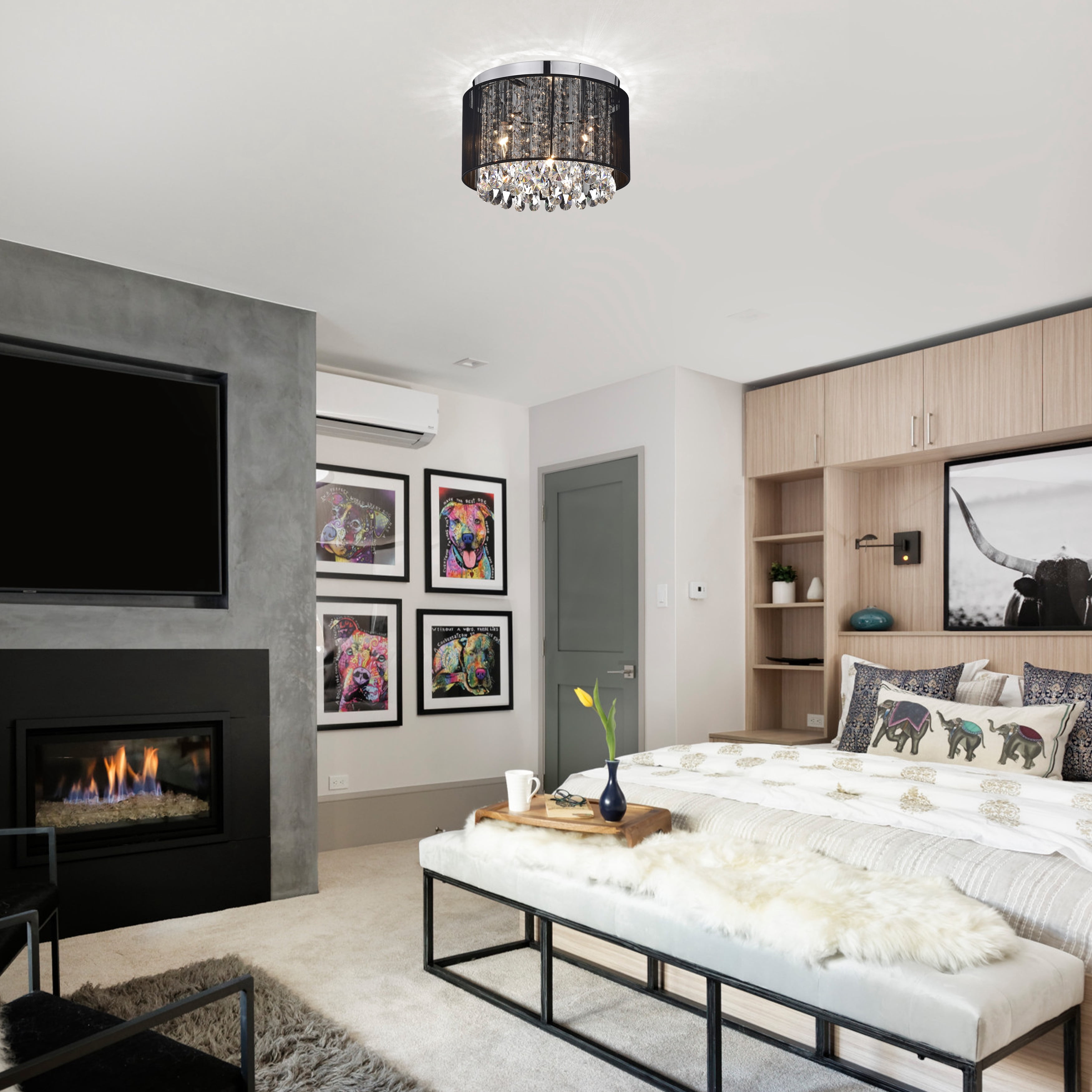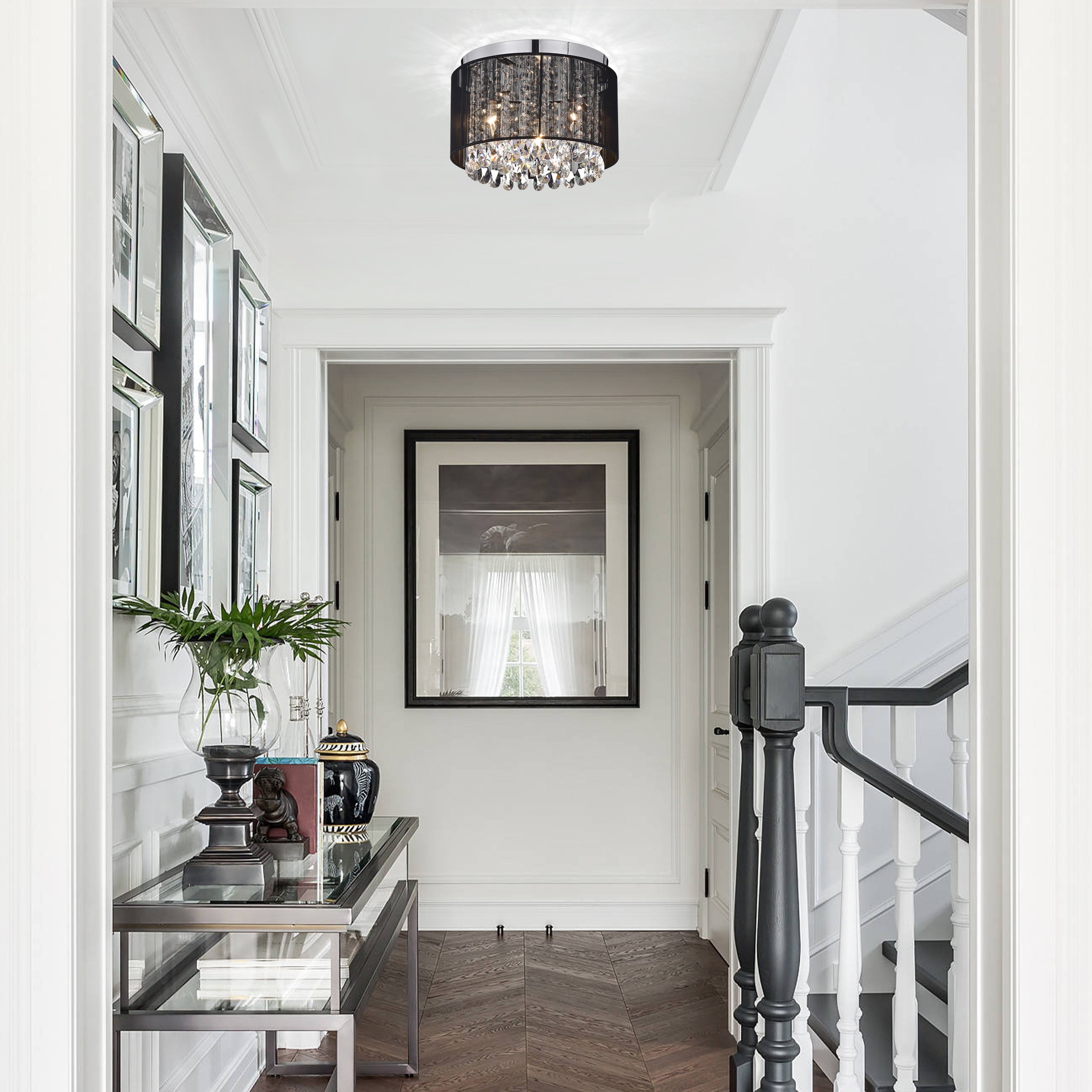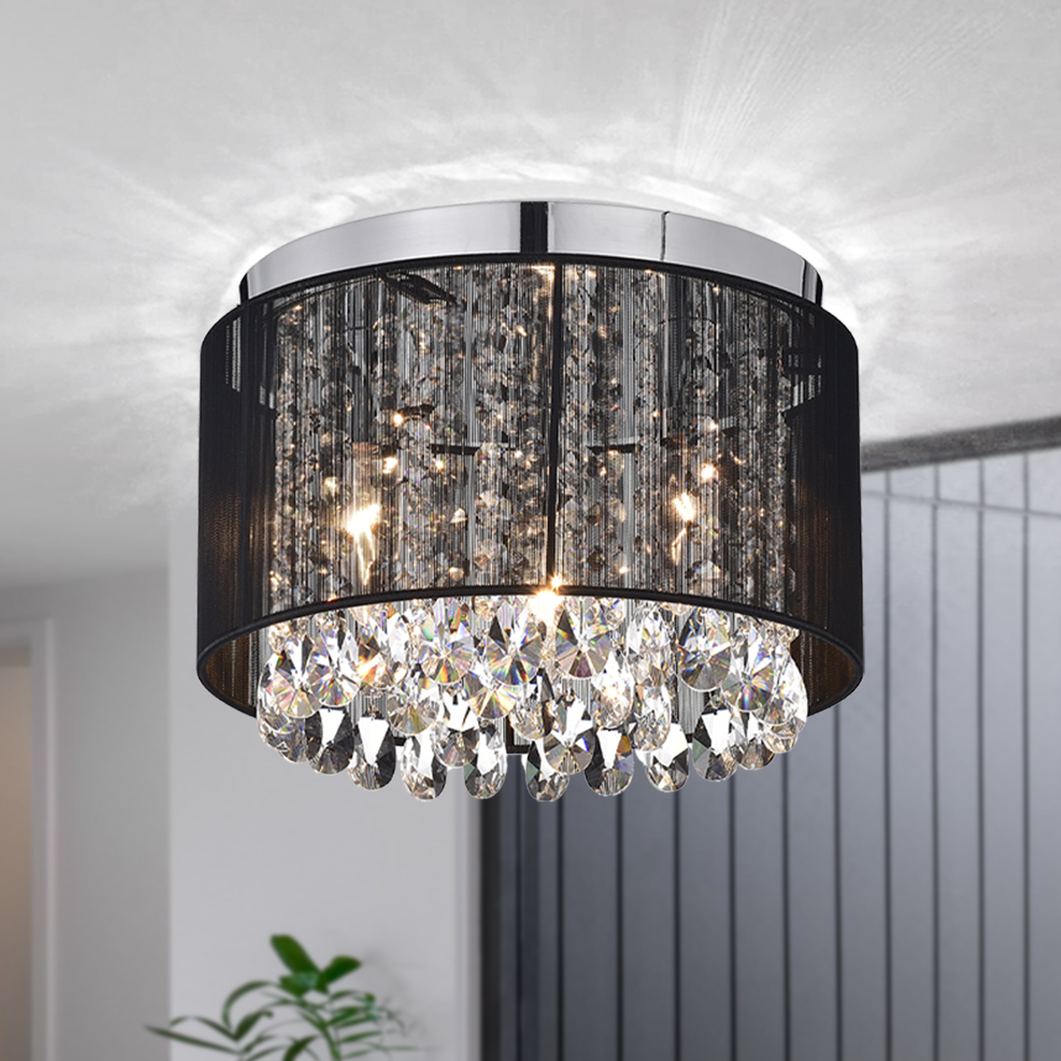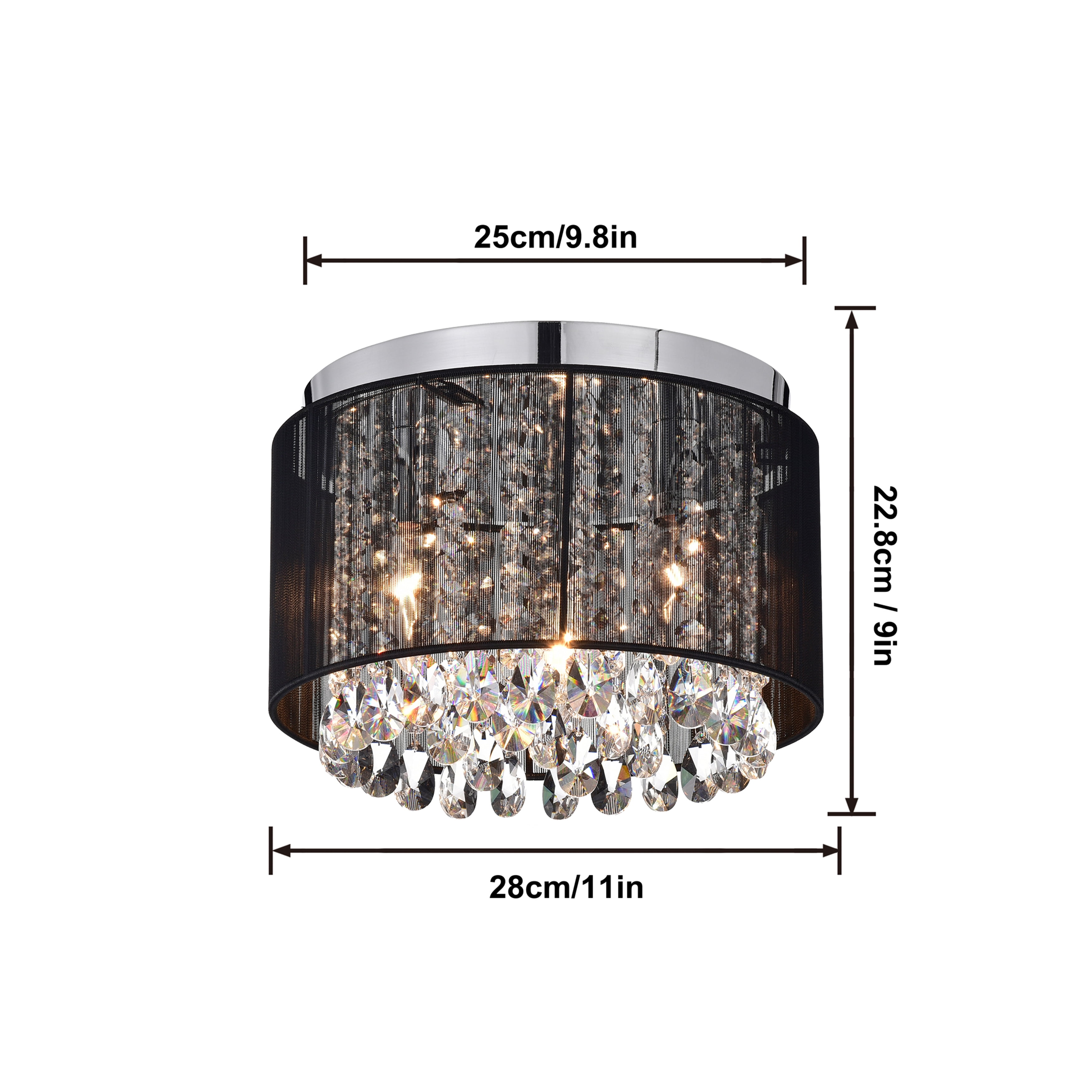 Black Chandelier Flush Mount Ceiling Light Fixtures 3-Light Mini Crystal Chandelier Lighting Drum Ceiling Chandelier Small Chandeliers for Bedroom Dining Room