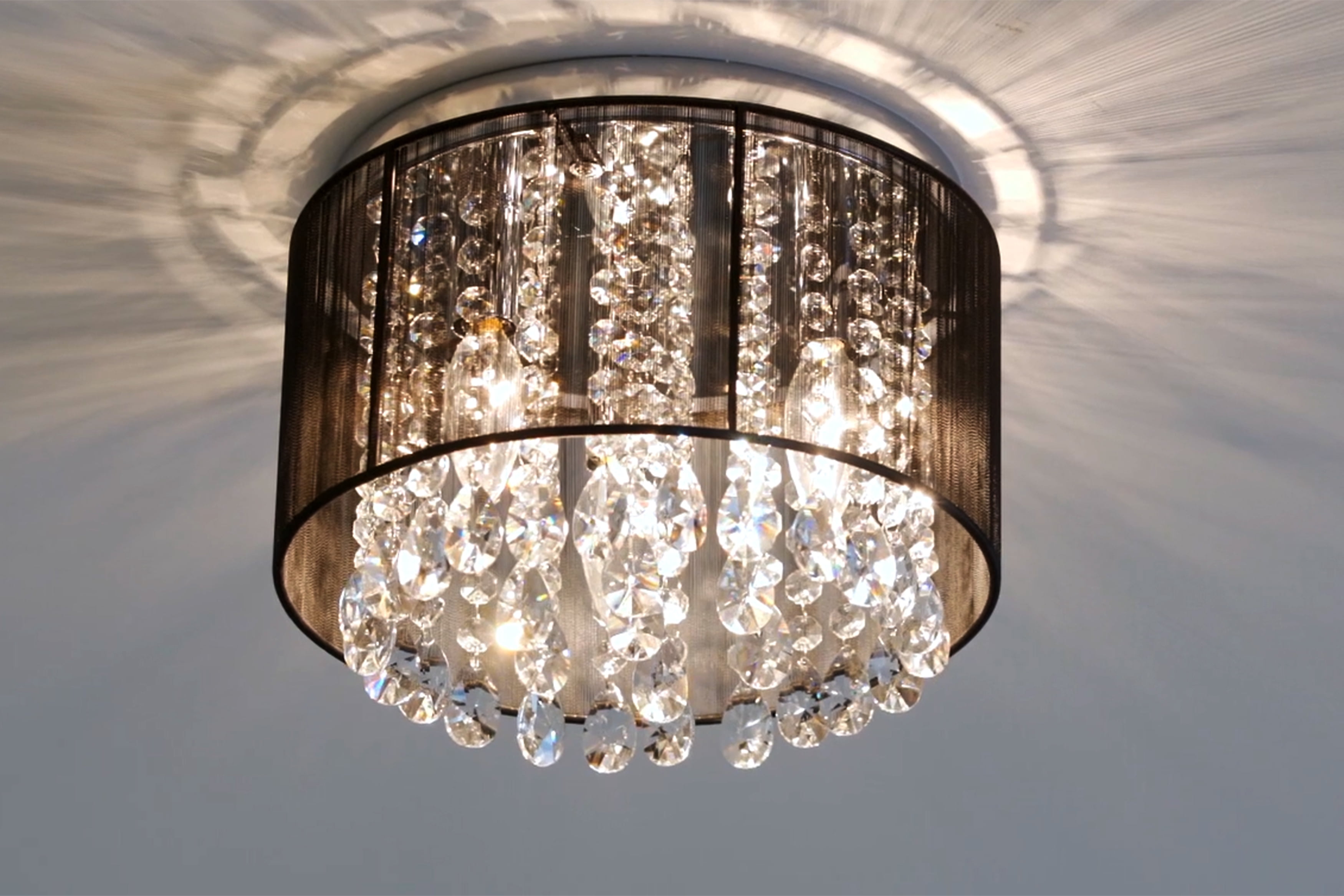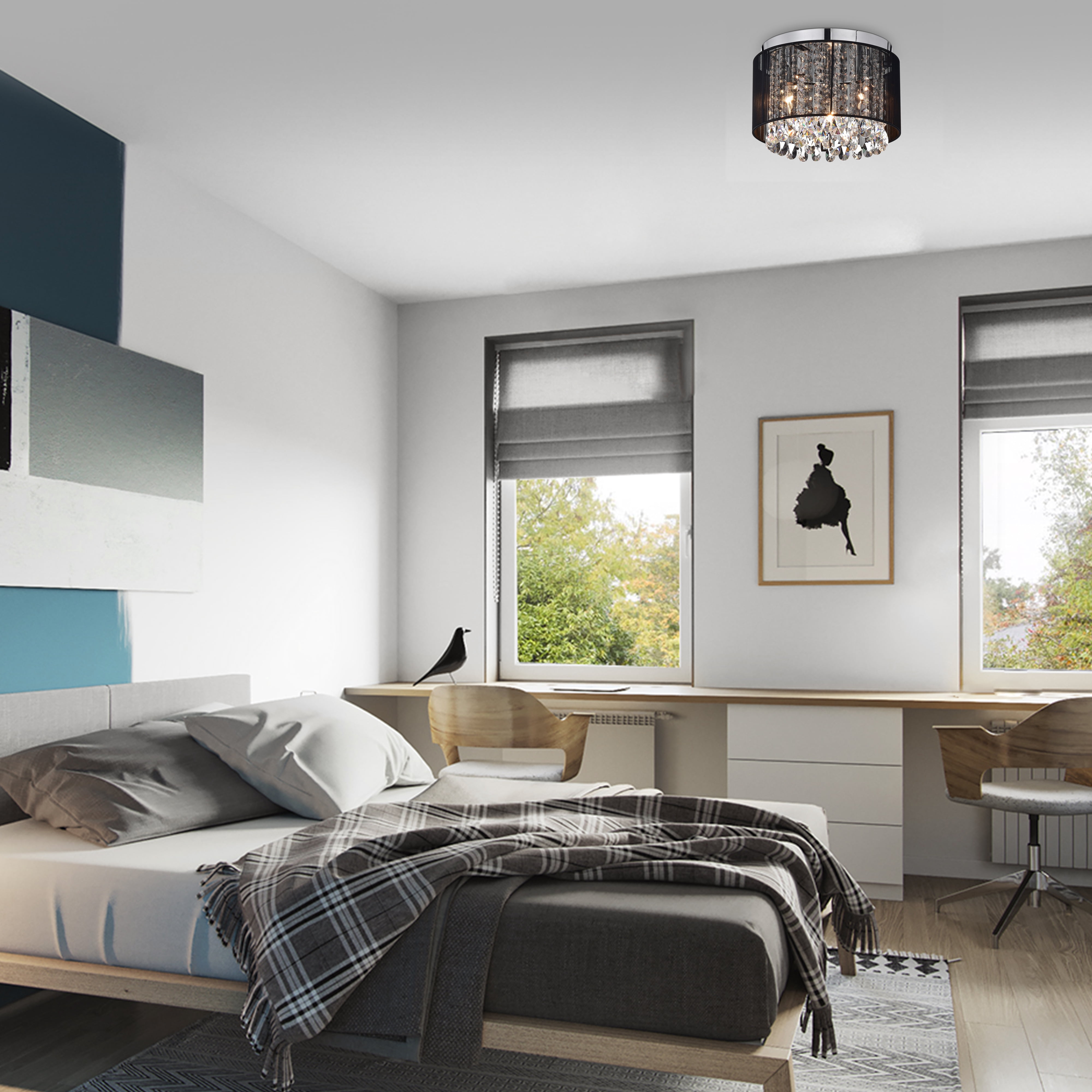 Ceiling fixtures Black with sophisticated glittering crystal detailing and black misty cotton thread has delicate flair to any area always, to enhanced home value, endless style of ceiling light can fit well with your existing décor, filter harsh rays by the classic black cotton thread shade and cast warm glow. Drum Ceiling Light is impressive for living room, bedroom, dining room, kitchen, baby’s nursery etc.