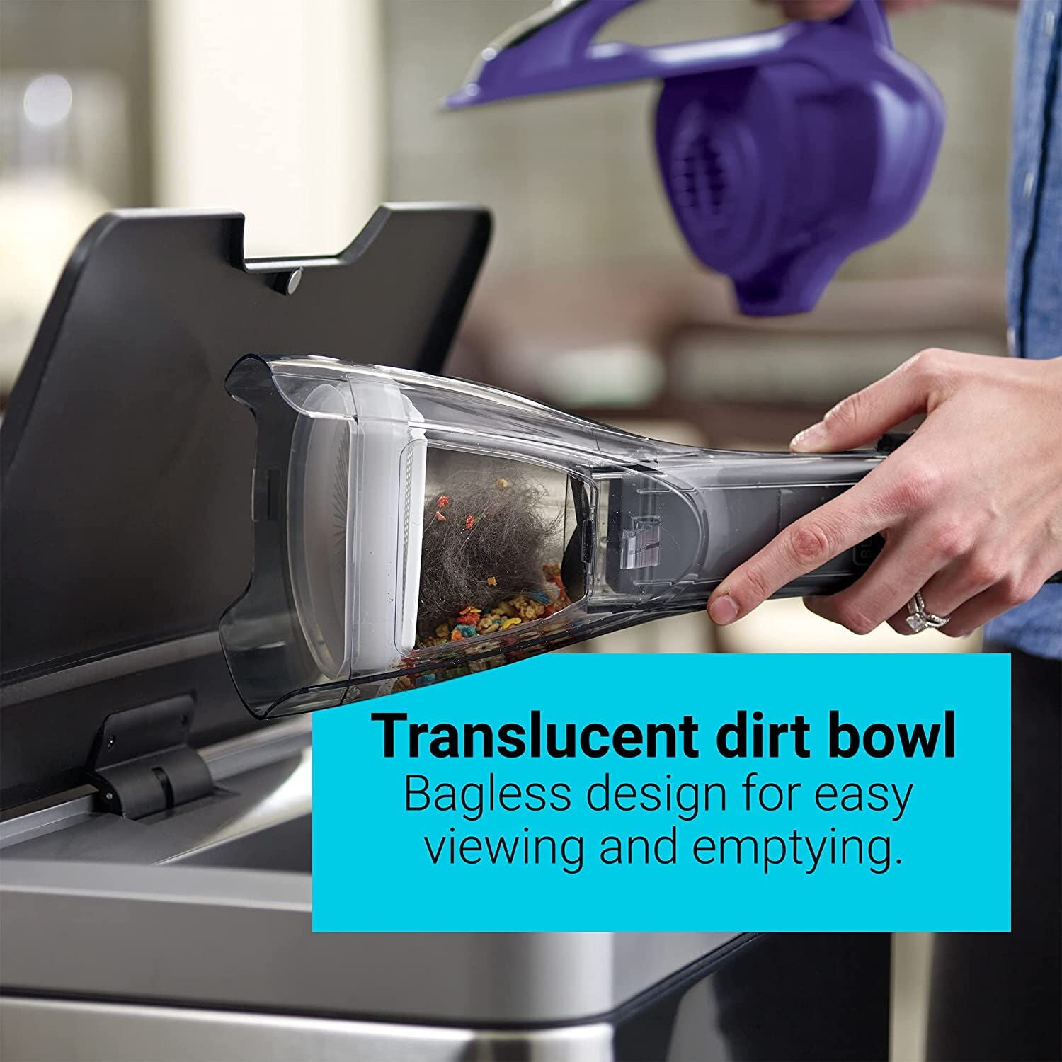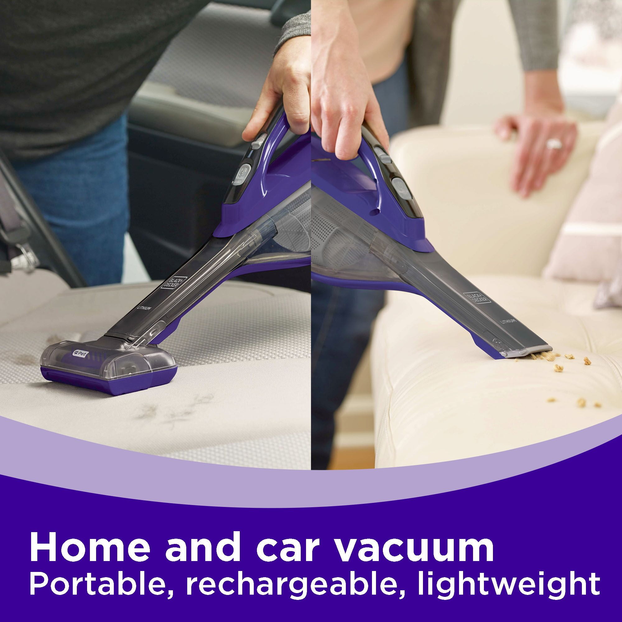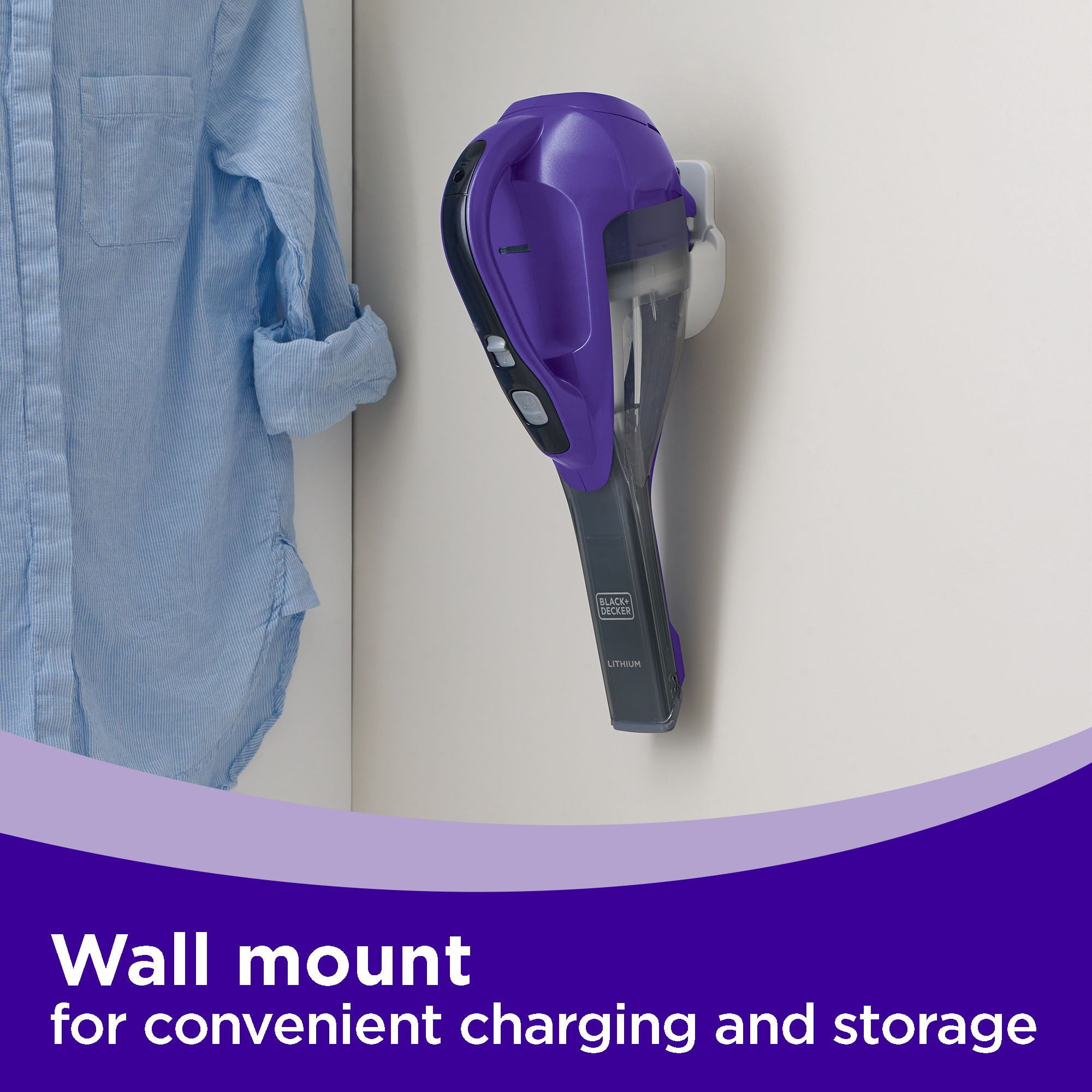 Motorized Pet Head with rubber tines helps to power through pet hair Easily empty the dustbin without touching the dirt Lithium Technology for strong suction and long battery life Washable bowl and filter for thorough cleaning Clear Bagless Dirt Bowl is easy to see dirt and easy to empty Pull-out Crevice Tool for hard to reach areas Push-in Brush for dusting and cleaning upholstery Charging Indicator light notifies you when vacuum is charging and/or fully charged Wall mount for versatile storage solution