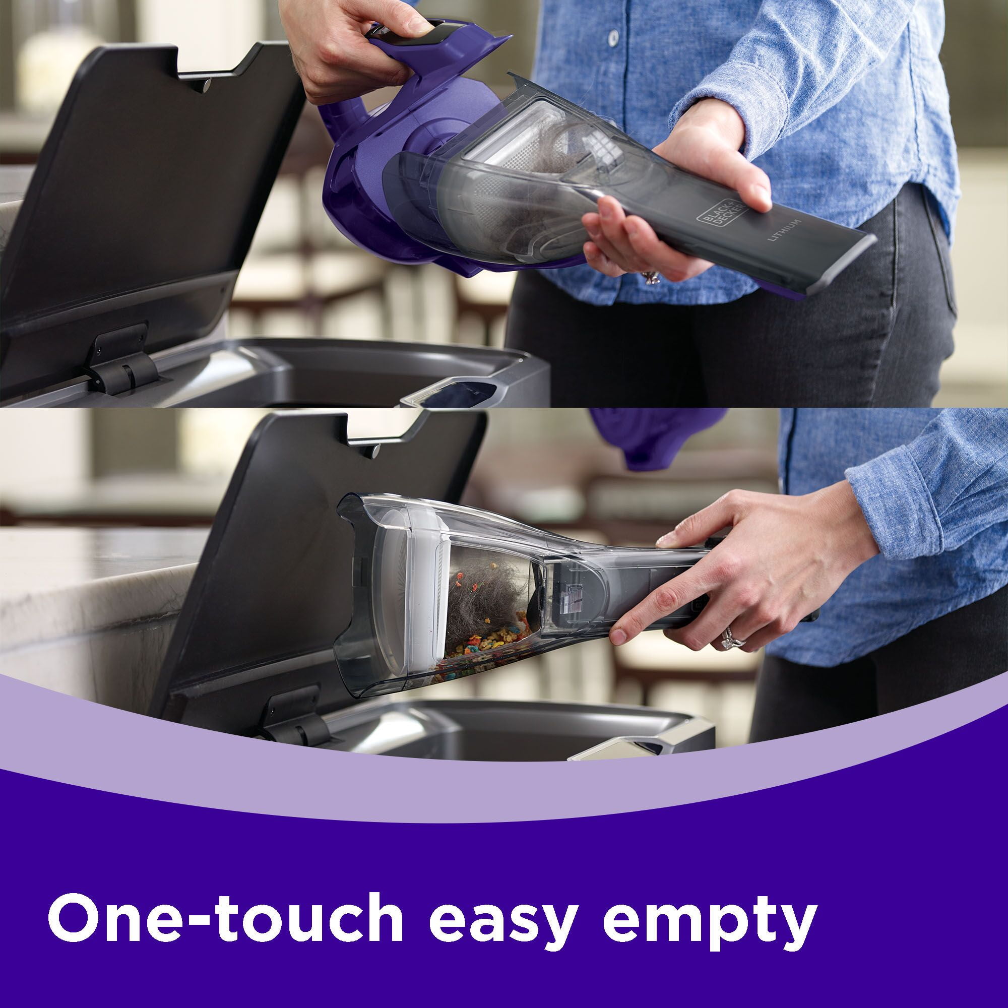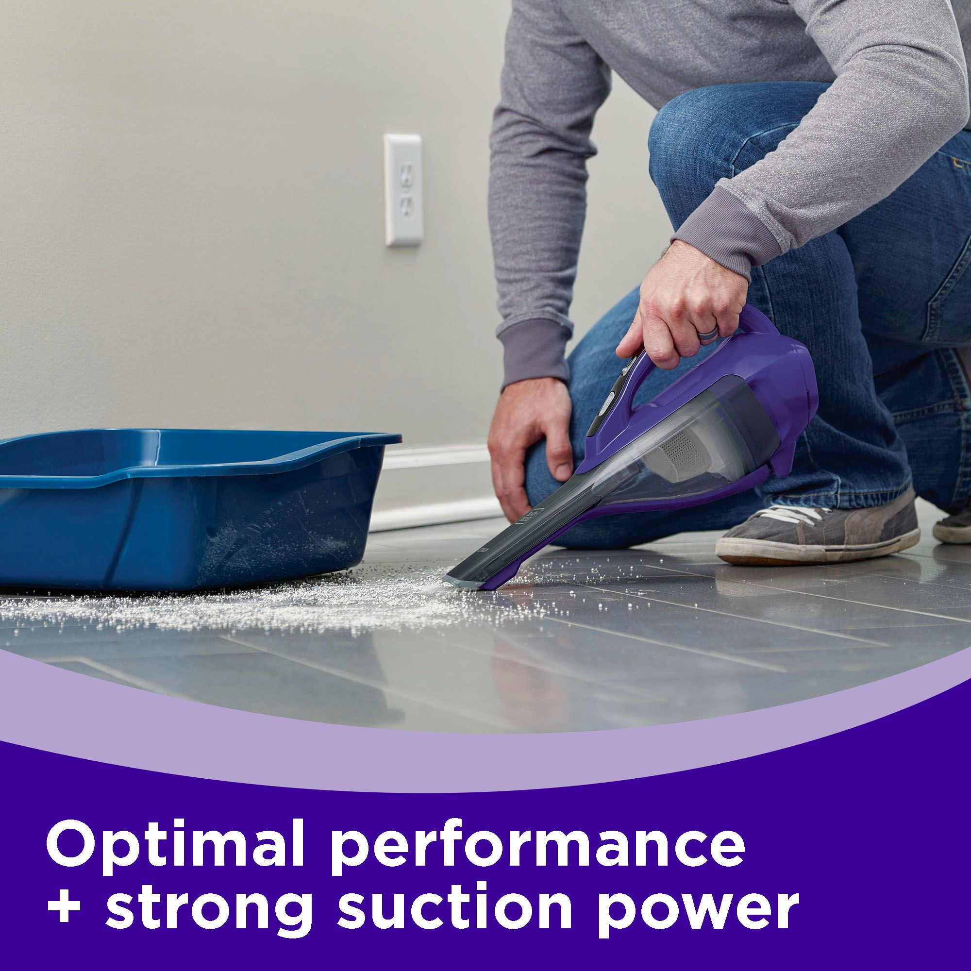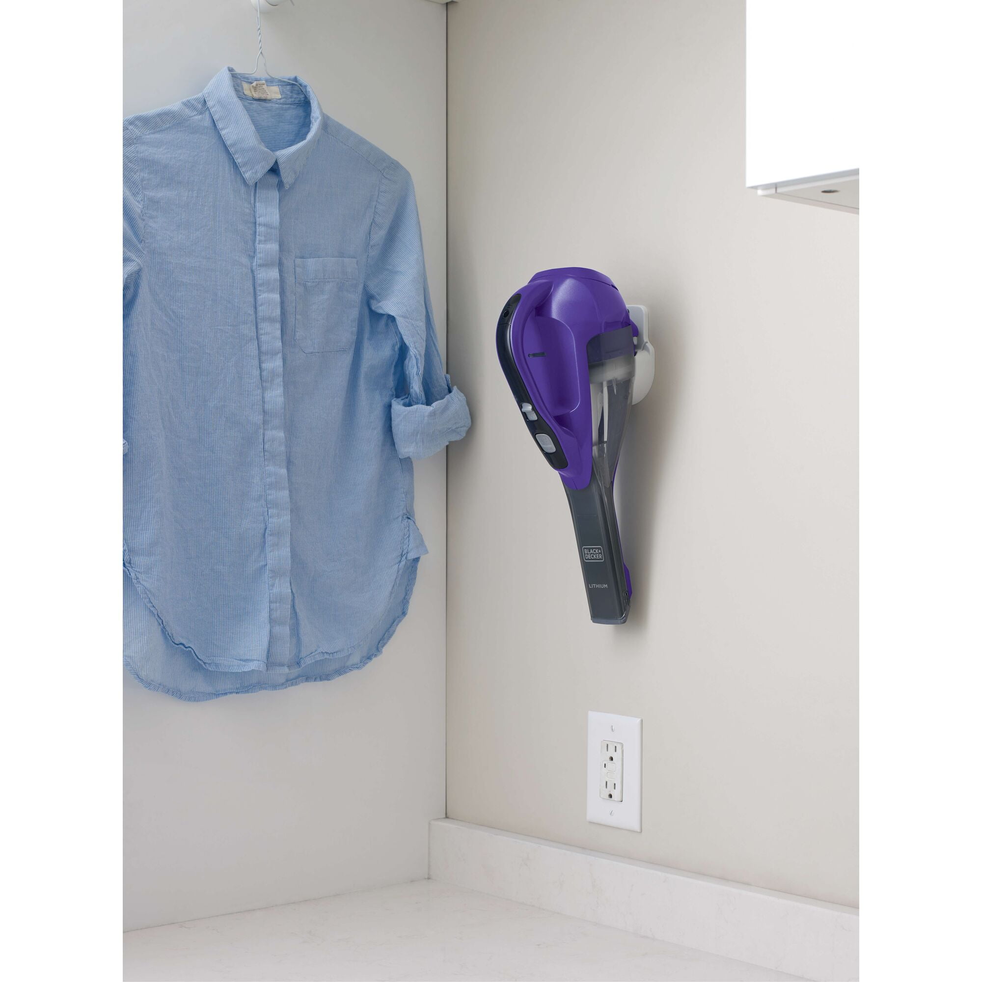 Motorized Pet Head with rubber tines helps to power through pet hair Easily empty the dustbin without touching the dirt Lithium Technology for strong suction and long battery life Washable bowl and filter for thorough cleaning Clear Bagless Dirt Bowl is easy to see dirt and easy to empty Pull-out Crevice Tool for hard to reach areas Push-in Brush for dusting and cleaning upholstery Charging Indicator light notifies you when vacuum is charging and/or fully charged Wall mount for versatile storage solution