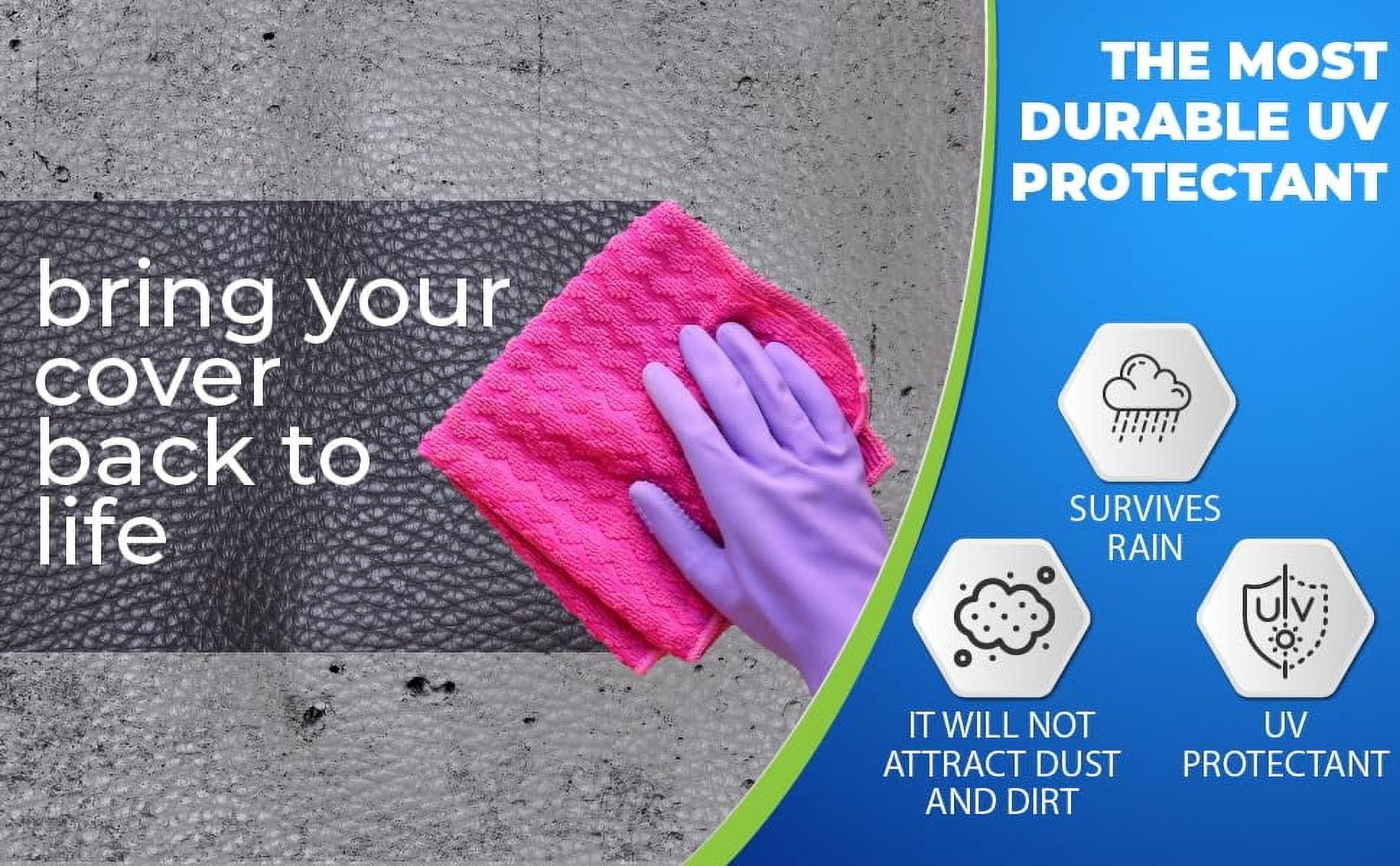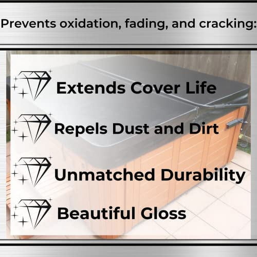 ultimate uv protection: experience unparalleled uv defense with our spa cover treatment, ensuring your spa cover retains its freshness and vibrant look far beyond expectations. weather-resistant durability: our formula offers exceptional durability, standing up to rain and harsh conditions without frequent reapplications. prevent oxidation, fading, and cracking while maintaining your cover’s beauty effortlessly. enhanced appearance: not only does our treatment restore shine and deepen the color of your spa cover, but it also creates an inviting, relaxing atmosphere. enjoy the added convenience of easy cleaning and dust and dirt repellency. maintain your spa cover: protect your spa cover against the elements. our specially designed uv protectant extends the life of your cover. homegrown quality assurance: from our family to yours, every bottle of our products is a testament to american craftsmanship. proudly made in san clemente, ca, our products stand as a beacon of quality in eco-conscious household care.