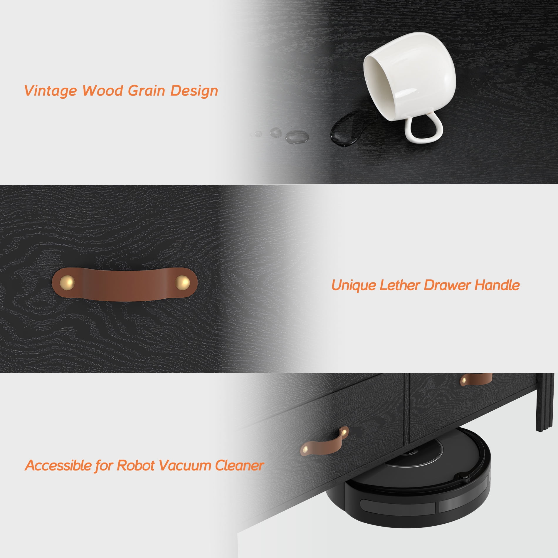 【6 Drawer Dresser】The black wood dresser comes with a modern design, which can be compatible with different room styles and decoration, adds a modern and stylish feeling to your living space, highlighting the style of your furniture, and offers a simple storage idea for your room. 【Stable and Sturdy】Made of high quality MDF material board, this dresser is waterproof, scratch-resistant and wear-resistant, easy to push and pull. The dresser for bedroom with a sturdy frame could support up to 44 lbs on the top and 6.6 lbs for each drawer. 【Multipurpose Usage】Except for being a dresser in your bedroom, this black dresser also can be used as a storage cabinet right next to your bed or a console table in living room to keep snacks and TV remote close to hand. This modern dresser could easily fit in various living spaces: living rooms, bedrooms, hallways, entryways, closets and nurseries, etc. Besides, it is an ideal for small spaces such as apartments and dorm rooms. 【Large Storage Space】Featuring 6 deep drawers and a wide table top, this bedroom dresser with 6 drawers is roomy enough to store all your clothes, T-shirt, socks, trousers, or toys, books. Having 1 or 2 of these in the bedroom, your home space will be sure look much more neat and tidy instantly. 【Easy to Assembly】This modern bedroom chest of 6 drawers comes with all screws needed and detailed step-to-step instructions. We would try our best to give you satisfied shopping experience, if you have any questions or problems, please feel free to contact us any time.