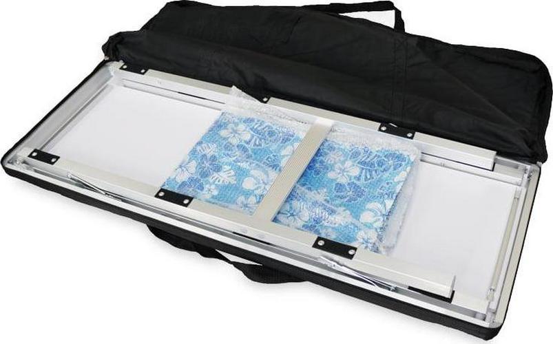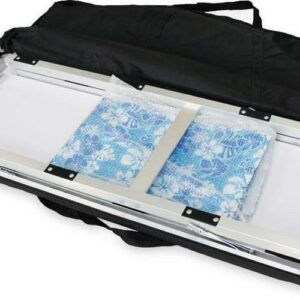 The Party Bar Portable Bar is a must-have at any tailgate party or event where drinks are to be enjoyed. The folding LED Party Bar is super portable, lightweight, rigid, and completely functional. The bar sets up quickly and with ease. The thick, heavy duty bar shelf rests on top of each leg brace creating additional stability and storage space for cups, ice, garnishes, etc. It’s best to put heavier items on the ground under the shelf. Attach the front/side skirt that fits your party atmosphere. Attach the black skirt for a formal/neutral event or bring the tropics to your party at any location with the Hawaiian bar skirt. The Portable Party Bar comes with a nylon carrying case with shoulder straps for convenient portability and also keeps your Party Bar protected while in storage. The color-changing LED glow lights add an awesome lighting effect to your portable Party Bar. Easily visible in daylight and extra bright in the dark, these battery-powered LED glow lights put the ‘Party’ in Party Bar!