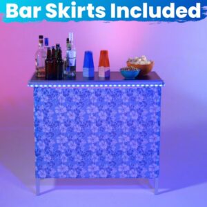 – DECORATIVE PARTY BAR SKIRTS: 2 skirts included with EACH Party Bar (Black & Hawaiian). Party Bar skirts wrap around the front and sides and attach with pre-installed hook & loop for quick & secure adhesion.