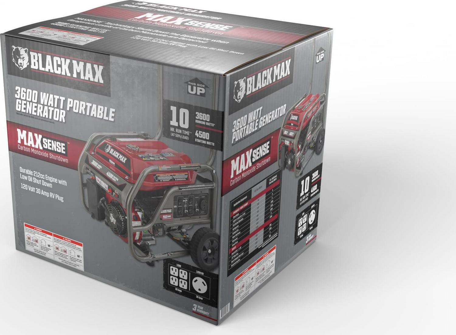 Black Max Portable 3600 Watt Generator with Auto Shutdown, Carb-Compliant