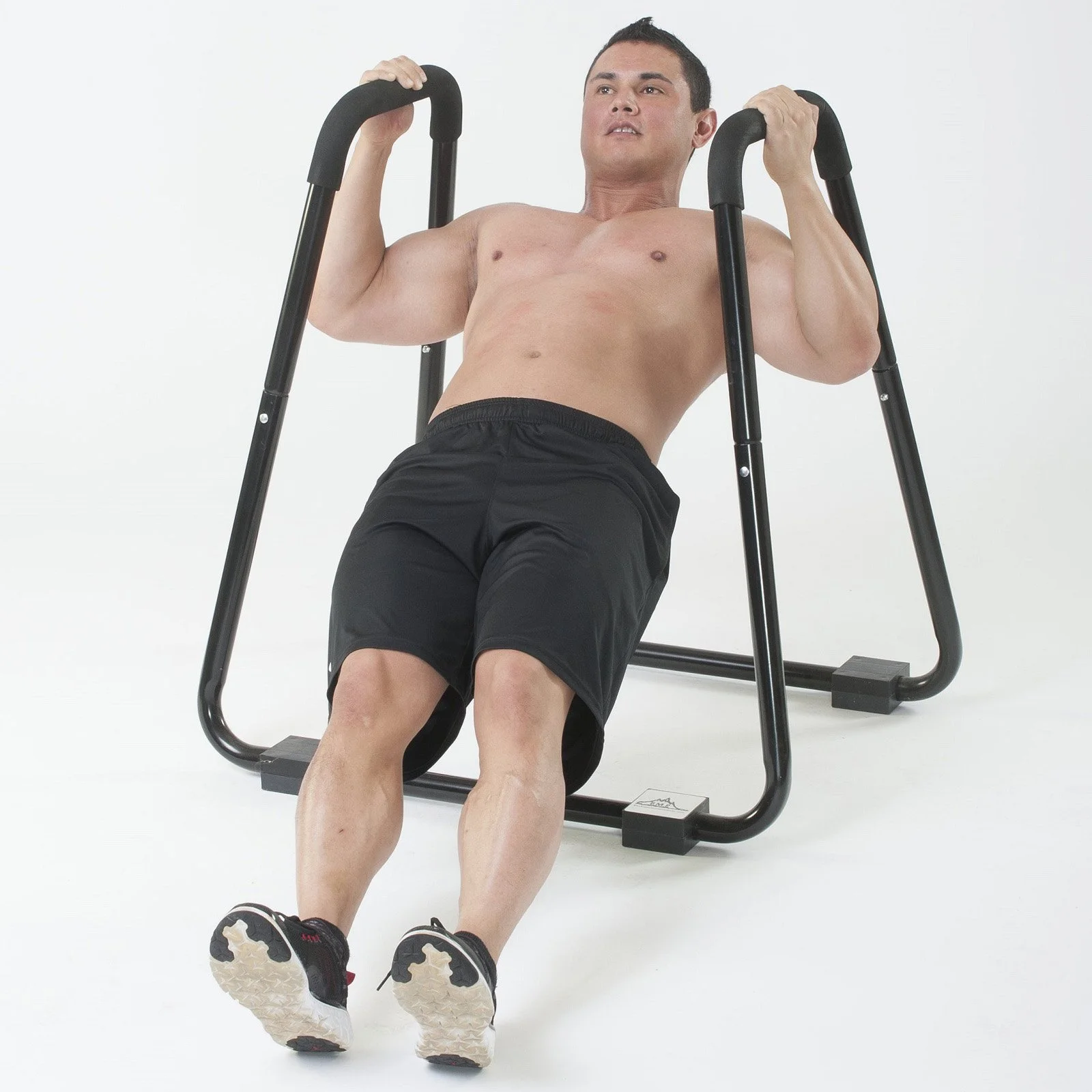 3000 lb. rated dip station. Easy assembly and functionality. Stabilizing pads for any surface. Soft foam grips.