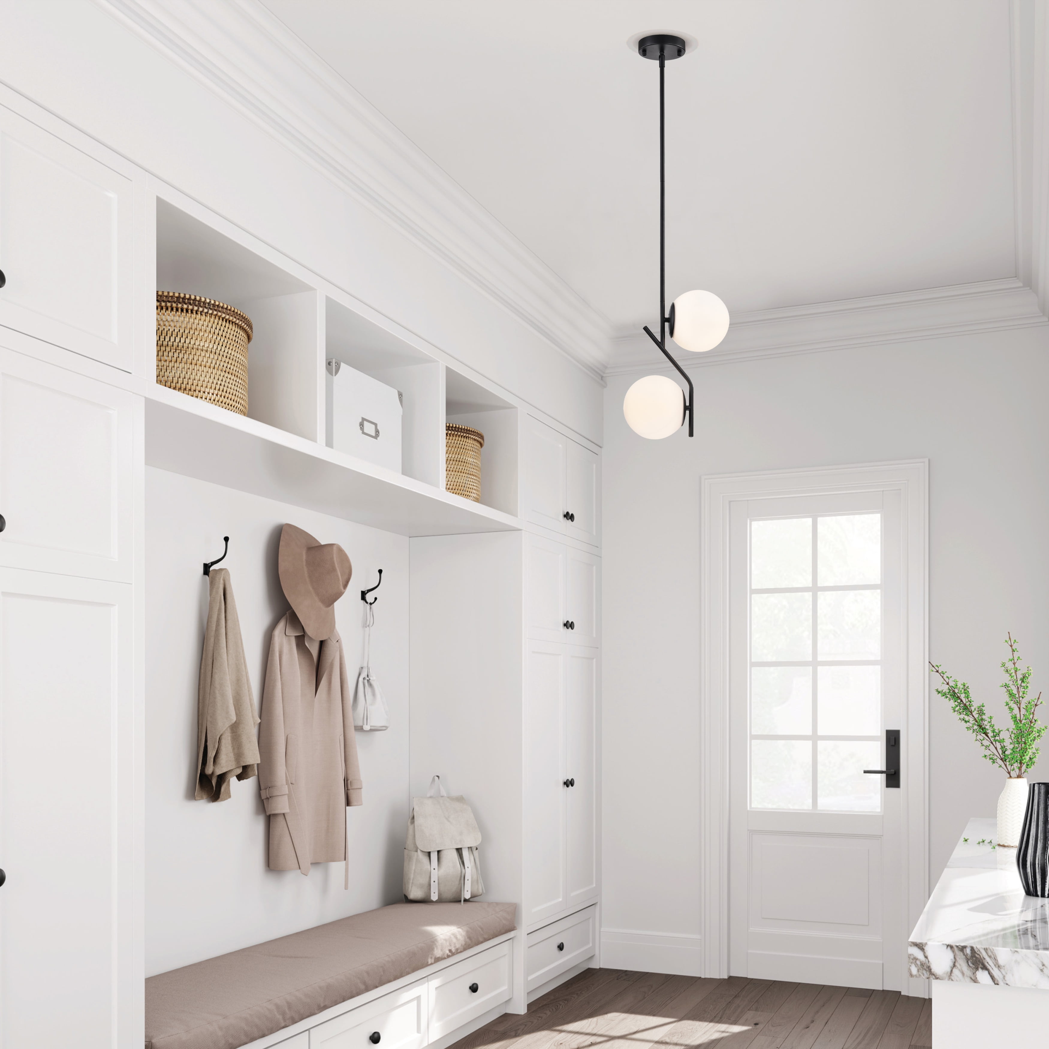 Home / Home, Garden &Tools / Black Pendant Light Fixture 2-Light Mid Century Modern Black Chandelier Globe Pendant Light Fixtures Glass Pendant Lighting for Kitchen