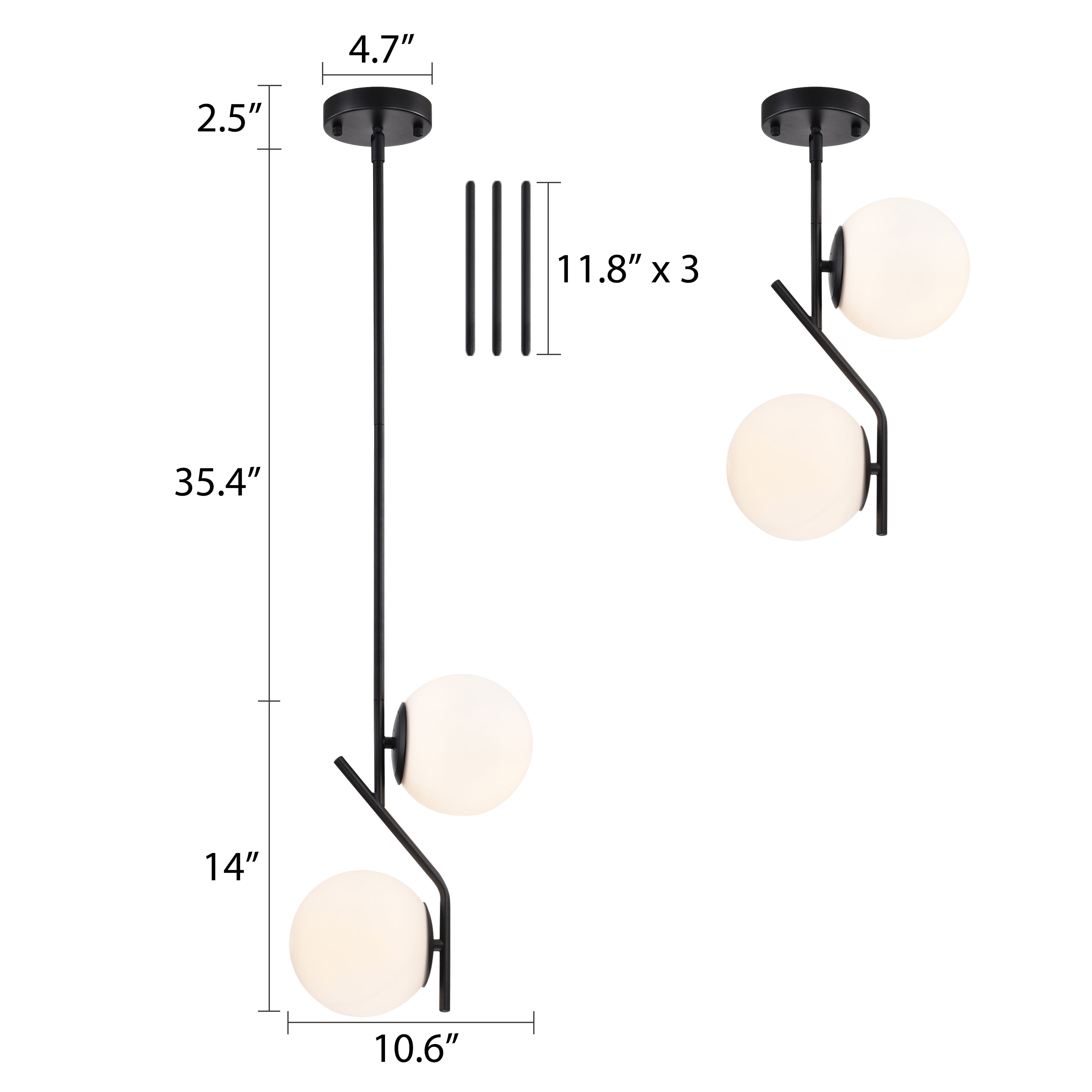 Pendant light fixture requires 2 E12 bulb, up to 60W. (bulb not included) Modern Pendant Lighting is adjustable, you can adjust the height of the pendant lights according to your lighting needs and desired appearance. All mounting hardware and detailed instructions are included in the package to help you install quickly and easily. If you have any questions about our Black Pendant Light or need any help, you can contact us anytime.