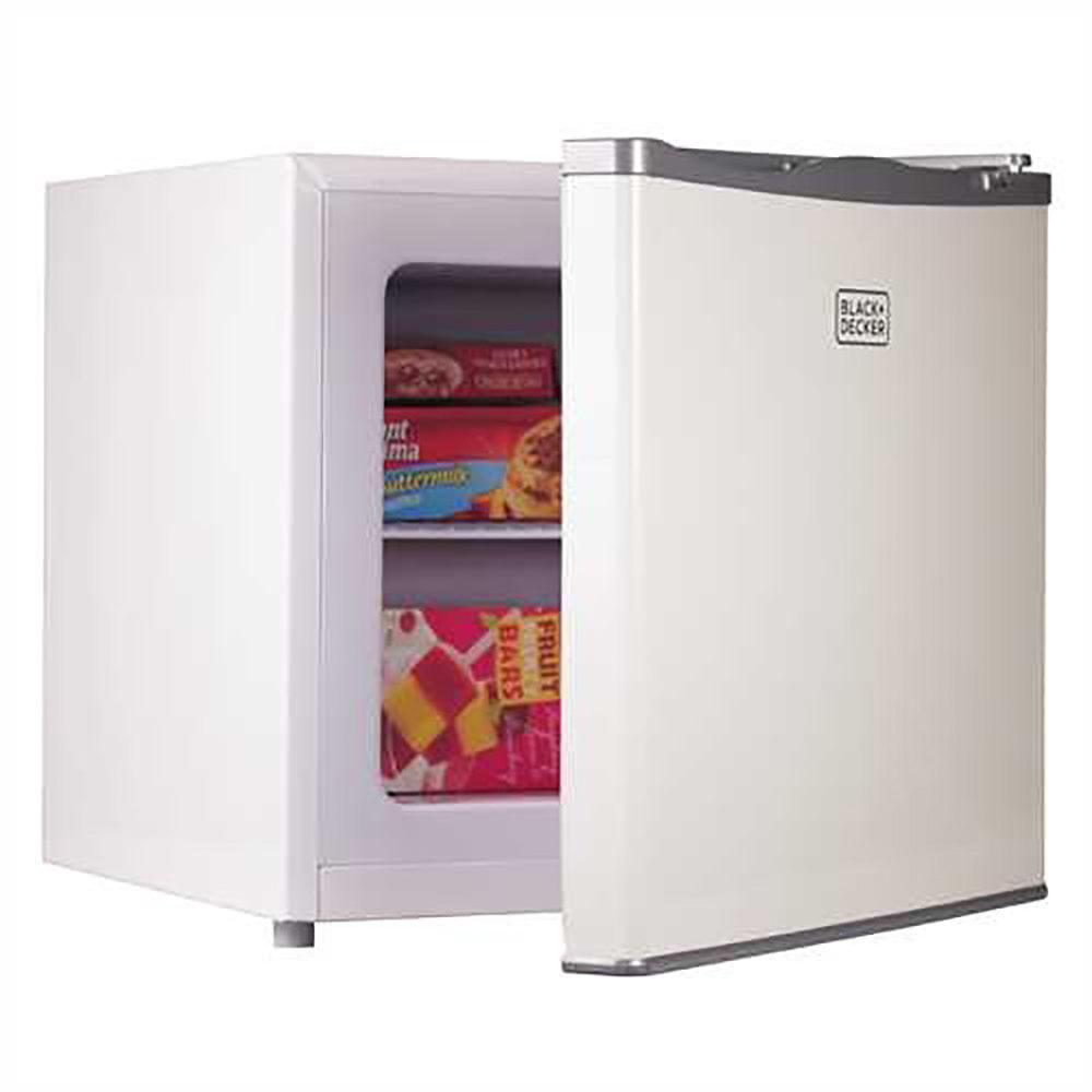Have a large family Entertain a lot This BLACK+DECKER 1.2 Cu. Ft. Compact Upright Freezer provides an impressive, estimated 42 lbs. of food storage, according to standard industry calculations. Just think about having your favorite piece of quality meat or your favorite appetizers or desserts ready whenever the mood strikes you! This compact freezer even has a wire shelf included to help you better organize the contents. And thanks to its compact size and stylish white color, you can place it anywhere in the home, garage, or office.