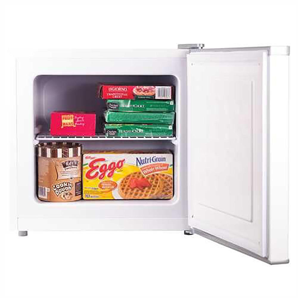 Where space is at a premium, this compact, 1.2 cubic foot upright freezer is the perfect solution. Despite a small footprint, there is still plenty of room when you’ve maxed out the freezer portion of your fridge and still want to stock up on sales items or ready for that big party. The full-length shelf is removable depending on how you want to organize the contents. Bullets: Approximately 42 lbs. frozen food capacity is ideal for your extra freezer storage needs in small spaces. Convenient compact design for anywhere in the home, garage, or office. Full-width wire shelf. Adjustable thermostat control to set the perfect temperature for the type and quantity of contents.