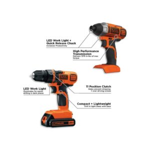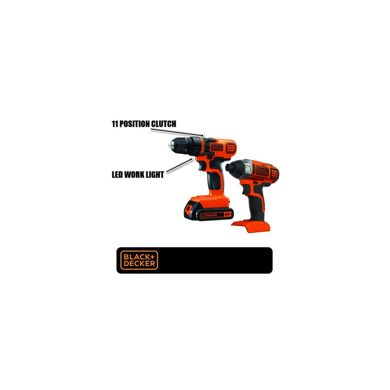 BLACK+DECKER 20-Volt MAX* 1.5 Ah Cordless Lithium-Ion Drill And Impact Driver Combo Kit, BD2KITCDDI