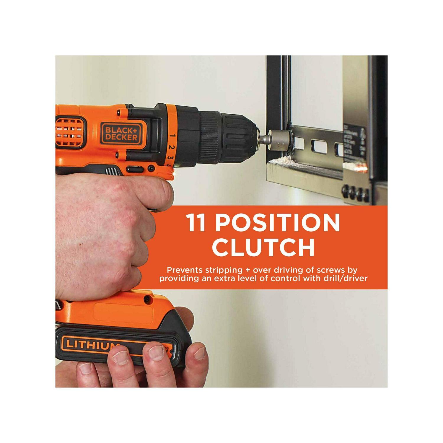 – 11 position clutch provides precise control for drilling into wood, metal, plastic, and all screwdriving tasks