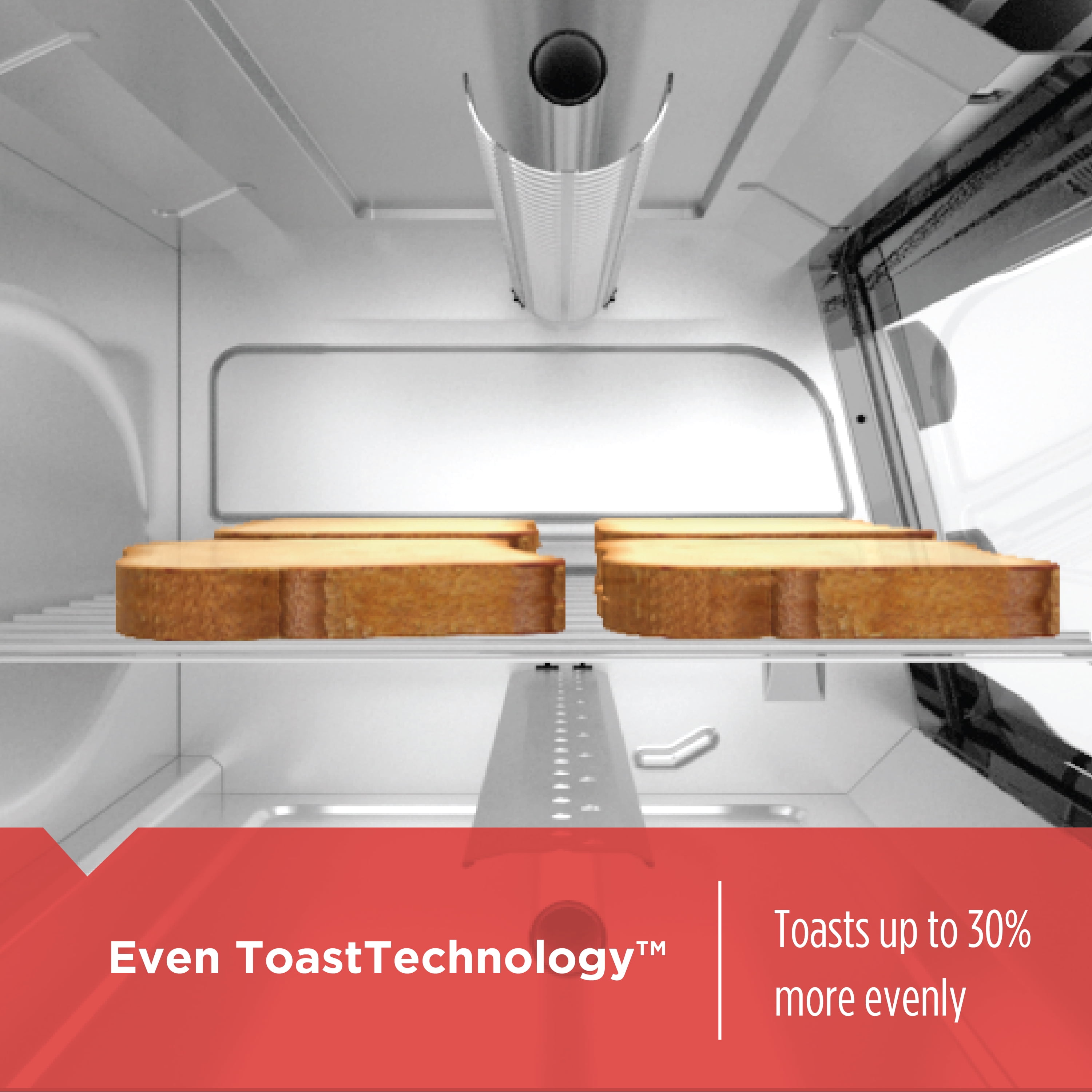 Great for cooking snacks and whipping up appetizers fast! This toaster oven fits a 9” pizza or four slices of bread, and the simplified dial controls let you set the 30-minute timer and choose to bake, broil, toast, or keep warm. Plus, our exclusive EvenToast Technology™ toasts bread up to 30% more evenly* so you get excellent toasting results every time. *compared to previous BLACK+DECKER Toaster Ovens