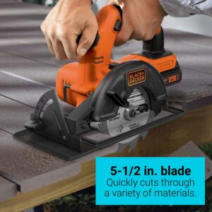 - 20V Circular Saw with 5 1/2″ fast cutting blade, bevel adjustment with detents for angle cuts