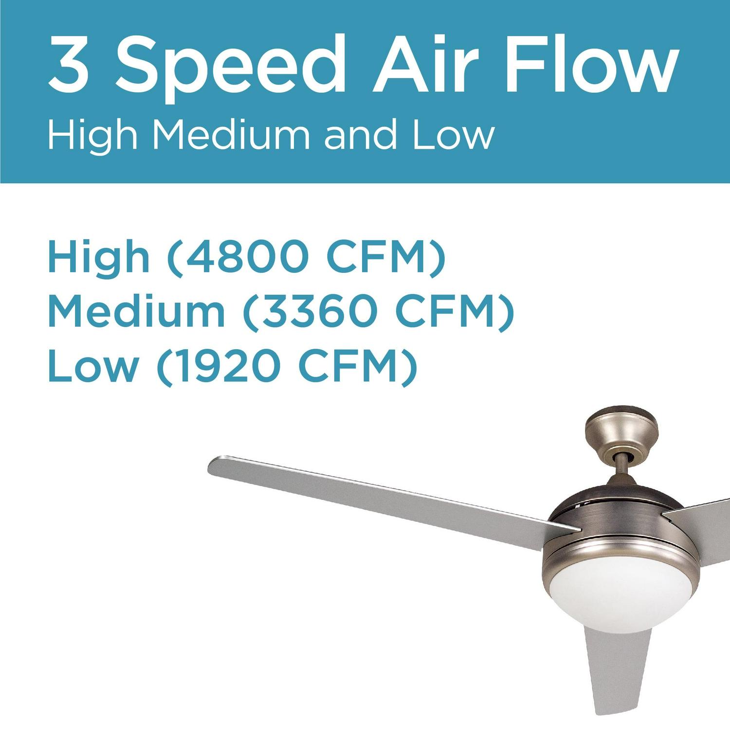 - 3-speed air flow rate: High 4,800 cfm/Medium 3,360 cfm/Low 1,920 cfm