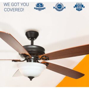 This BLACK+DECKER 52 inch ceiling fan with light will circulate air like never before. When it comes to quality ceiling fans, our attic fan (52″ x 52″ x 17″) delivers powerful cooling thanks to 5 reversible plywood blades in Mahogany and Natural Wood Finish. Choose your fan setting: HIGH (4500 CFM), MED (3150 CFM), and LOW (1800 CFM). Control your house fan with a convenient fan remote. Talk about ease! Our ceiling fan with lights remote control (16.5 lbs.) comes in a modern nickel finish, which is cool and contemporary, sure to delight many aesthetics. This brush nickel ceiling fan cools rooms up to 270 square feet quickly and efficiently. What’s better than a 52 inch ceiling fan with light and remote for a hot summer day This brushed nickel ceiling fan with 5 reversible plywood blades is easy to operate, stunning to look at, and powerful in its ability to cool a room. In the world of lighting & ceiling fans, this BLACK+DECKER 52 ceiling fan with light and remote control ceiling fan ranks among some of the best. Enjoy a frosty white ceiling light that can set the ambiance of a room with 2 13W E26 bulbs sold separately. Stay comfortable and breezy any time of year with BLACK+DECKER’s brushed nickel ceiling fan with light and ceiling fan remote!