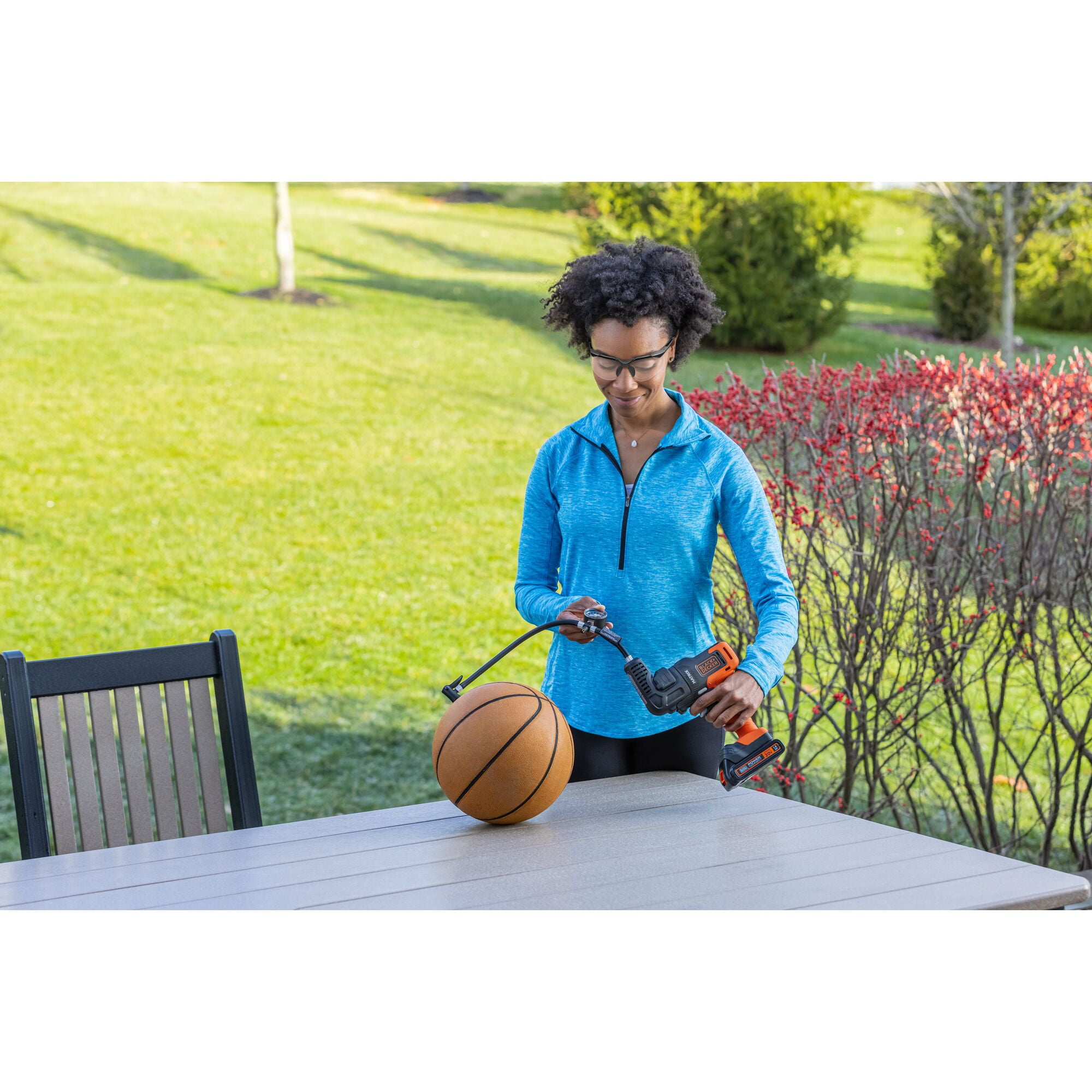 Up to 100 PSI (Peak) to easily inflate sports balls, bike tires, pool toys and more, 14 in. hose for easy attachment, On-board storage for convenience and keeping all your accessories nearby.