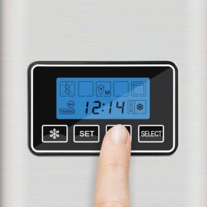 – EASY TO USE CONTROLS: Portable ice machine features electronic controls with LCD display that indicates ice cube size, add water indication, timer and full ice bucket indicator