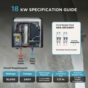 BLACK+DECKER Black and Decker 18 kW 3.7 GPM Electric Tankless Water Heater, Digital Self Modulating Hot Water Heater Electric
