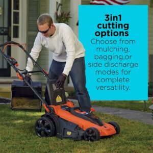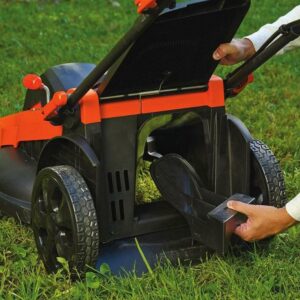 The BLACK+DECKER CM2043C 40V Max lithium 20″ mower includes two 40V Max lithium batteries to give you twice the run time per re-charge. With one lever you can adjust the height adjustment anywhere from 1 1/2 in. Up to 4 in. Without tools. The 3-in-1 configuration lets you mulch clippings, bag them or discharge out the side. This mower allows you to mow right up to edges & spend less time trimming thanks to the edge Max design. An easy-fold handle easily folds for compact storage. Specs: 20″ cutting swath, cutting heights 1-1/2″ to 4″. Maximum Initial battery voltage (measured without a workload) is 40V – nominal voltage is 36V. Includes: 1) CM2043 mower, 2) LBX2040 40V Max lithium ion batteries, 1) charger.