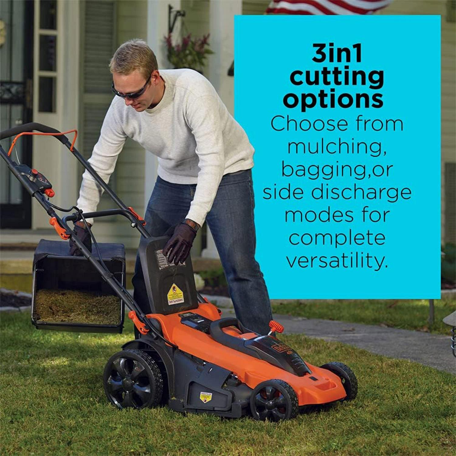 Mulching, bagging and side discharge of grass clippings gives you 3-in-1 versatility. Two 40V MAX* Lithium Ion batteries are included for twice the runtime. One lever adjusts the cutting height anywhere from 1-1/2 in. to 4 in., without tools. Mow right up to edges and spend less time trimming thanks to the EDGEMAX design. A convenient easy-fold handle saves storage space.