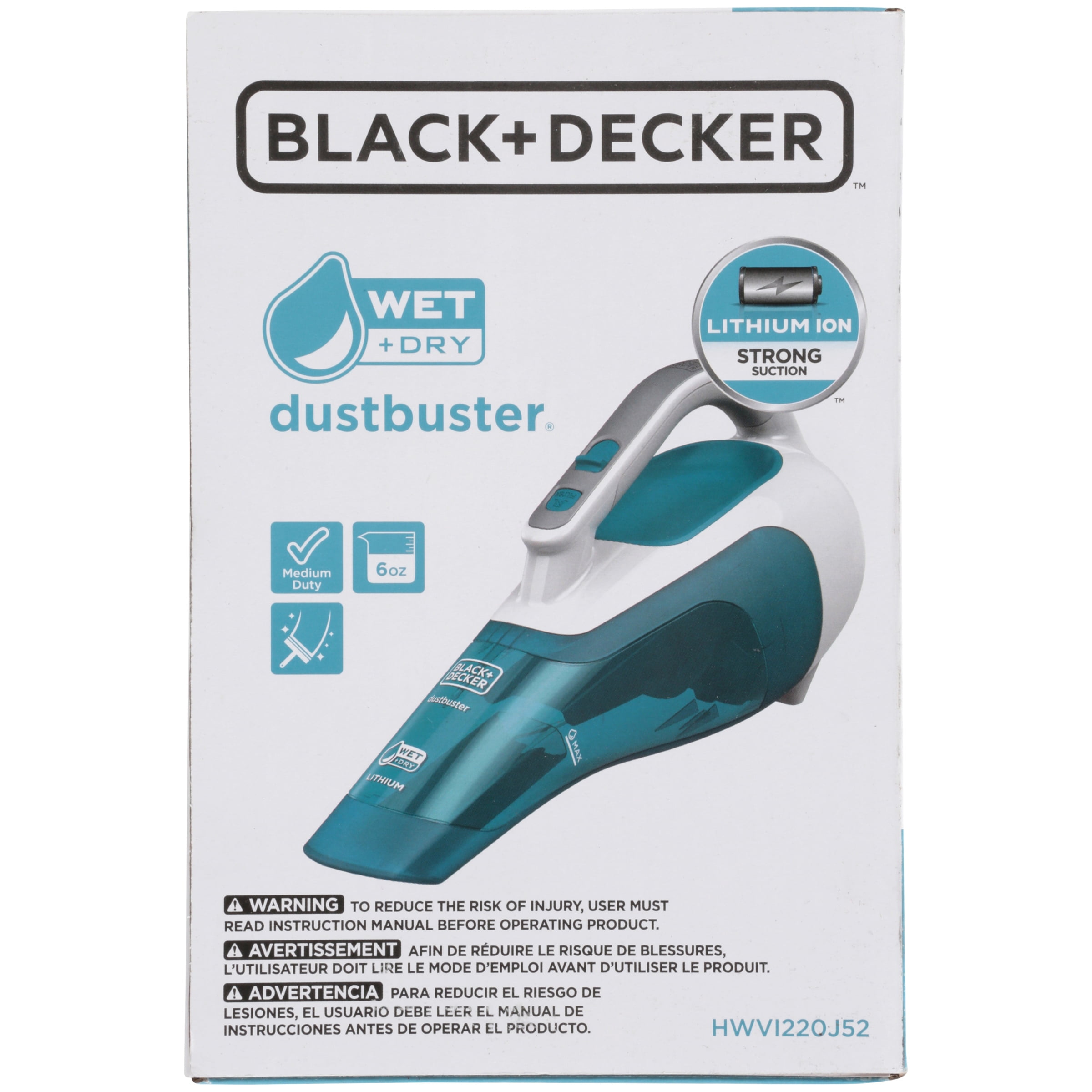 This versatile dustbuster® wet/dry vacuum makes quick work of up to 6oz of sloppy wet messes, dirt and dry debris. Lightweight but powerful, this all-in-one solution makes everyday pickups easy and thorough. Scoop up large debris with the wide mouth, use the squeegee for streak-free liquid clean-ups, then just rinse out the translucent aqua bowl and washable filter for the next job. An included wall mount makes this hand vacuum store away easily and keep your cabinets and counters clutter free.