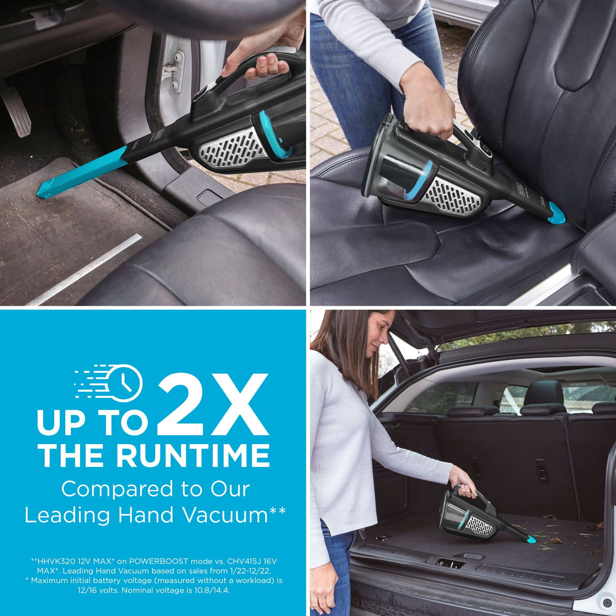 BLACK+DECKER Cordless Handheld Vacuum, Extra Length Dustbuster 12V, For Multi-surfaces, Powerful suction, Long-lasting battery, XL Dustbin, HHVK320J00W