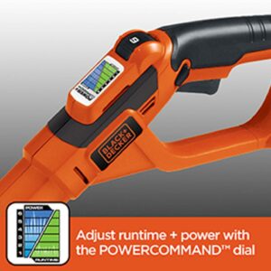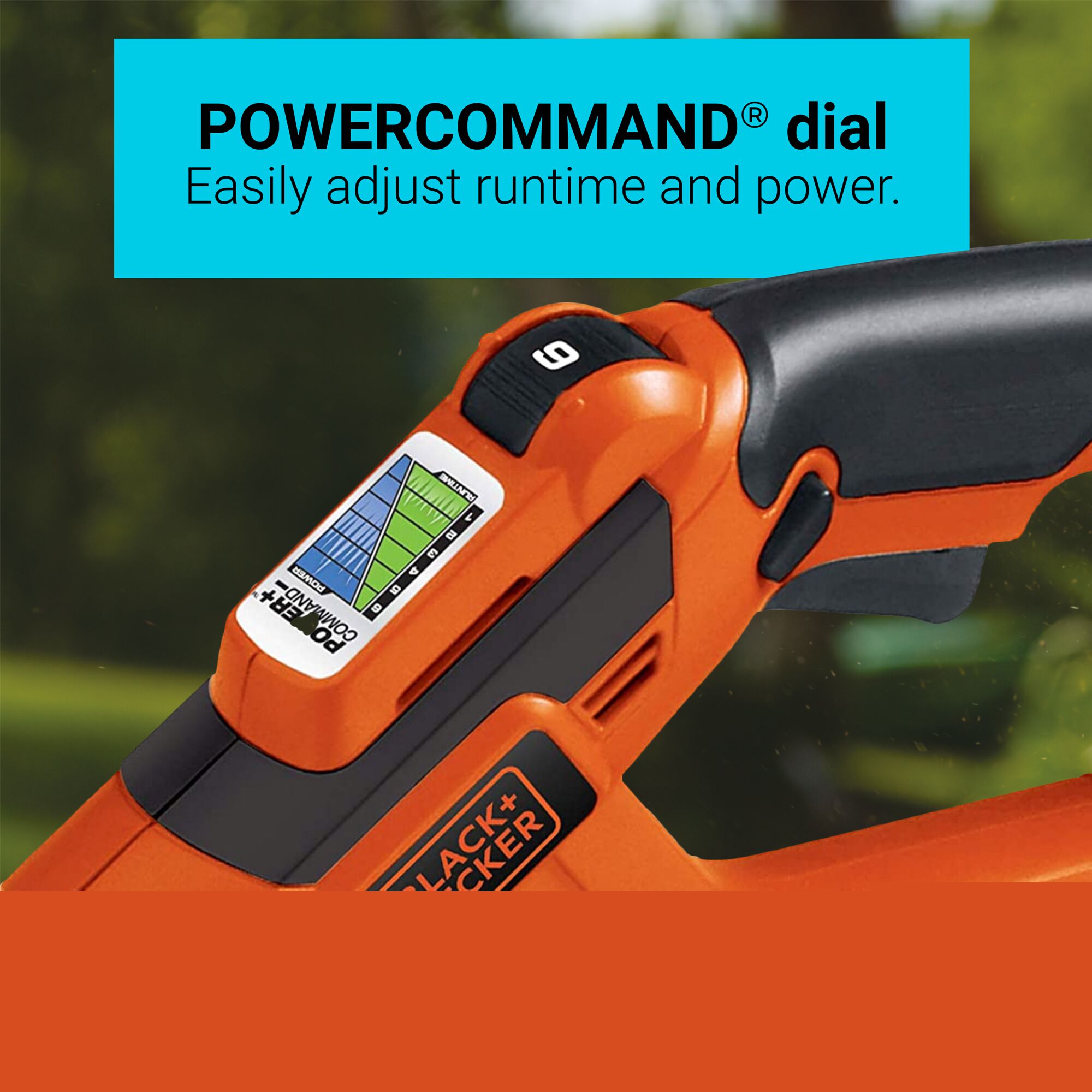 – Use POWERCOMMAND dial to choose between max power to tackle thick weeds and max runtime to trim longer