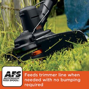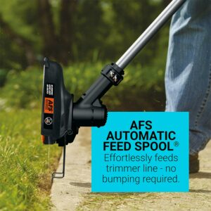 – Cordless string trimmer has an automatic feed spool – AFS; automatically feeds trimmer line when needed with no bumping required