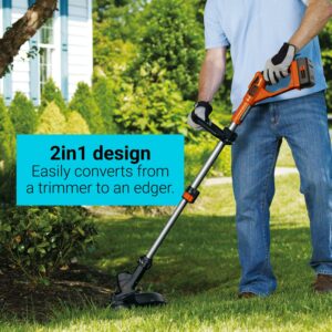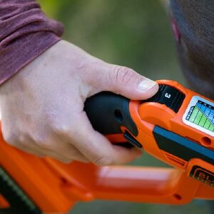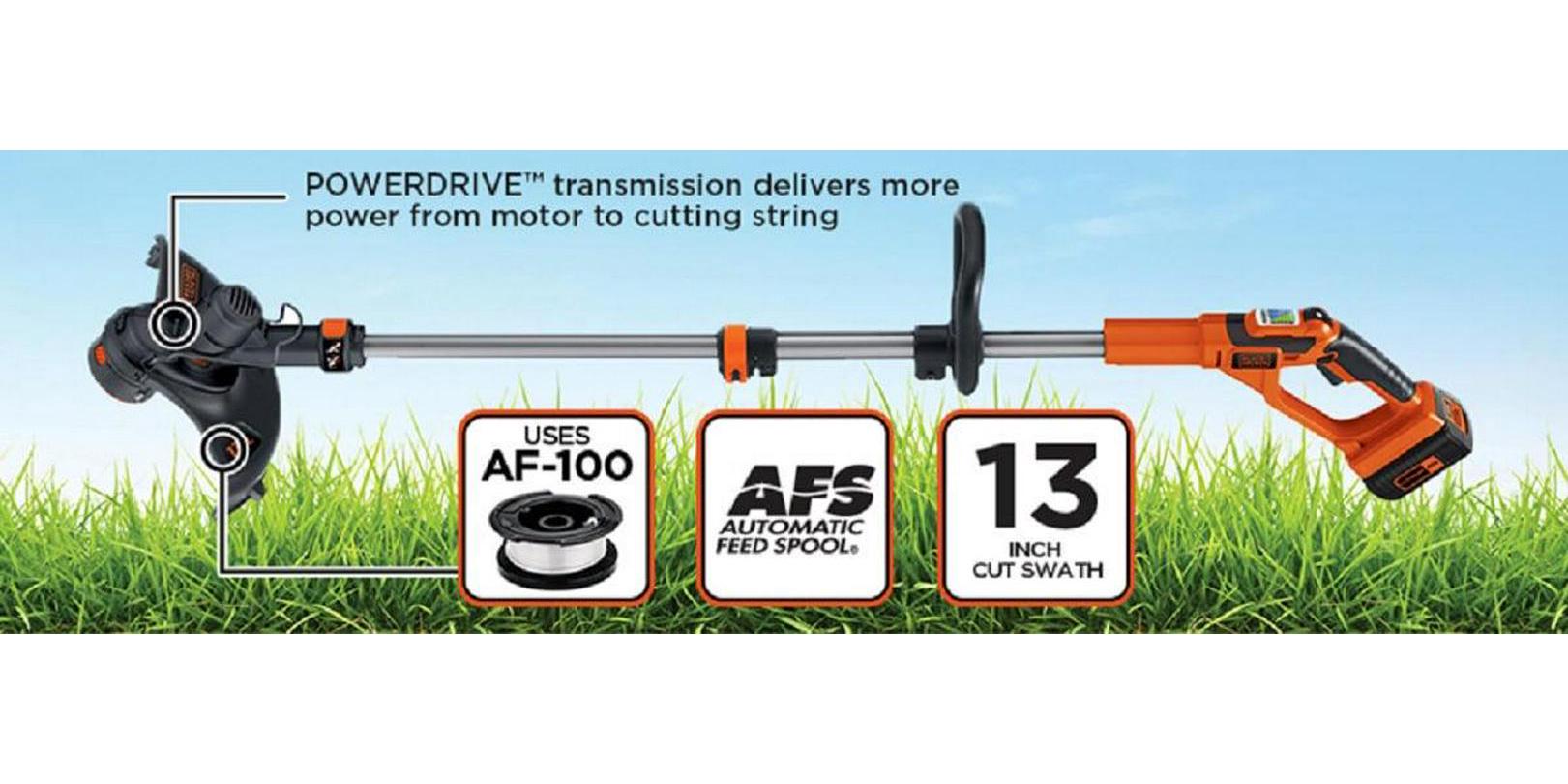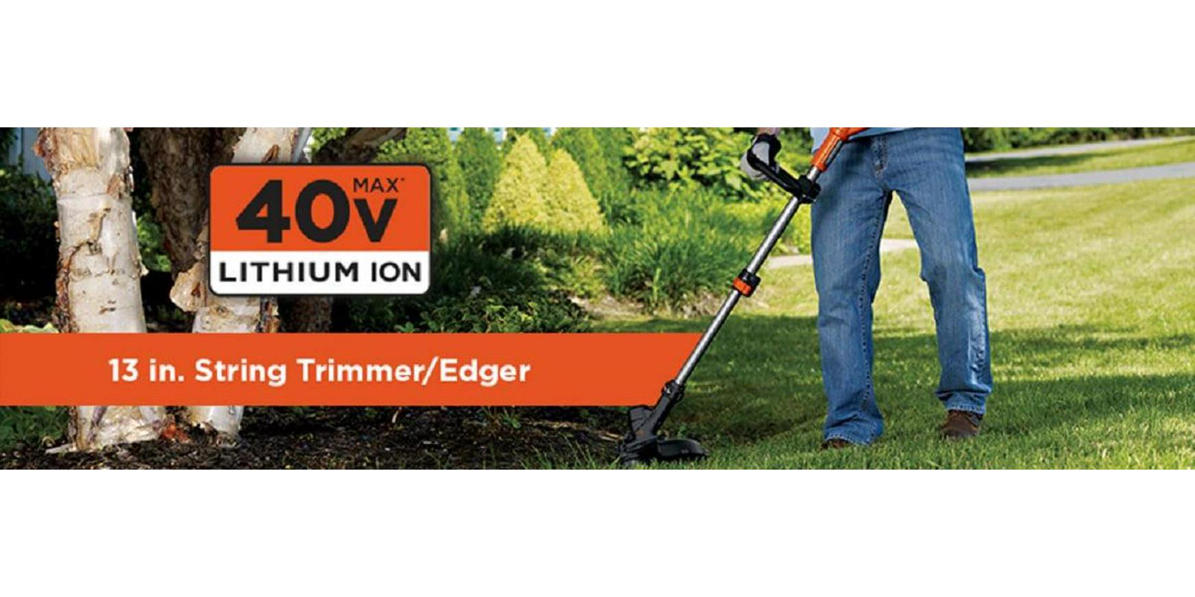 Make yard work easier with the Black and Decker LST136 40V Max Lithium String Trimmer With Power Command. This powerful tool makes fast work of trimming hedges, removing weeds and more. The cordless string trimmer powered by Black+Decker’s high-powered 40-volt lithium battery system, which offers power, excellent runtime and the versatility to share batteries with other tools within the system. PowerCommand dial to choose between max power to tackle thick weeds and max runtime to increase battery life. The PowerDrive Transmission delivers more power from the motor to the cutting string so you can get the job done faster. The Automatic Feed Spool ensures continuous work without bumping and having to stop to adjust the spool. The Black + Decker 40V trimmer easily converts to an edger with a turn of the shaft, delivering more power from the motor to the cutting string so you can get the job done faster. An included Fast Charger takes just two hours for a full charge.