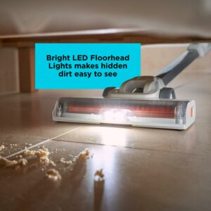 Made for large spills, you can do more cleaning with up to 25% more pickup on carpet and up to 44 minutes of runtime. Depending on the type of floor, the high-tech Power series+ vacuum automatically adapts its suction power with Autosense technology while its cyclonic filtration system helps to keep the filter clean for pro-level performance. Hair, fur, and debris are typically hard to pick up, but the anti-tangle brush bar and integrated LED floorhead lights make vacuuming easy. Use the crevice tool and quickly transform it into a handheld vacuum to clean stairs and furniture, lie it flat to vacuum clean under beds and couches, and store when all work is done with this vacuum’s convenient, self-standing capability.