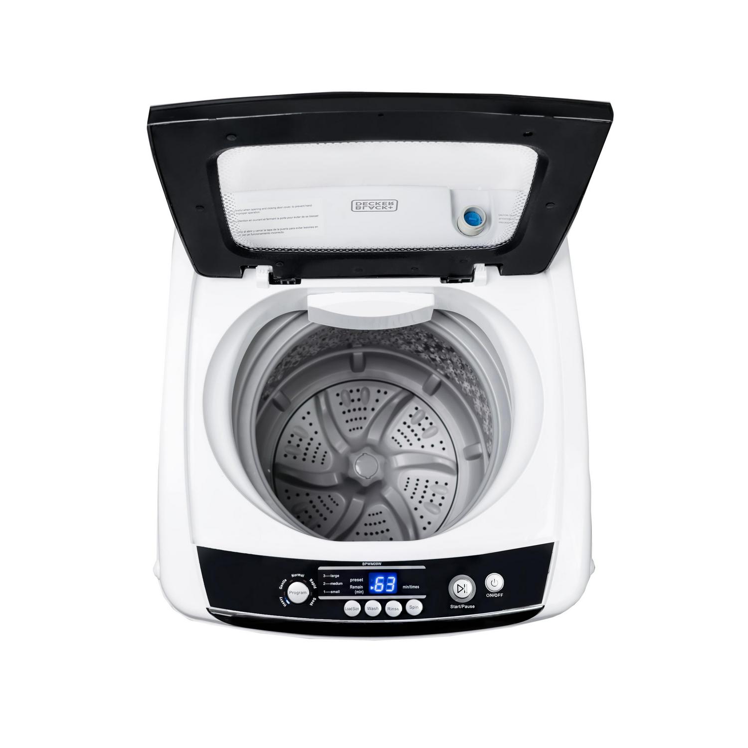 BLACK+DECKER Small Portable Washer 0.9 cu. ft., 5 Cycles, Transparent Lid and LED Display