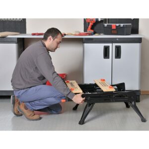 – BLACK DECKER Workmate workbench transforms into a vise, sawhorse and bench tool stand