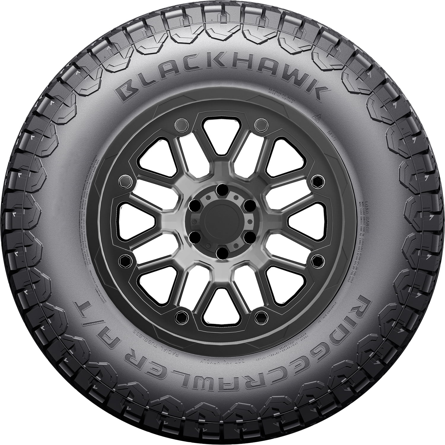 Blackhawk Ridgecrawler A/T OVERVIEW The Blackhawk Ridgecrawler A/T is an all terrain, all weather tire made for light trucks and SUVs. Blackhawk offers a 50,000 mile treadwear warranty with this model. Its aggressive tread design, with the staggered blocks and the high void ratio, offers great all terrain grip. The ideal tread design and the optimal compound blend manage to easily perform on soft, loose, and uneven terrains. The optimized tread elements manage to grip the surface with extra biting edges. As a result, these elements enable the tire to keep forward motion at all times. The model also maintains a clean footprint, by eliminating mud, snow, and rocks stuck between the tread elements for better surface contact. This tire also guarantees great on-road comfort levels. The tread’s siping and groove placement manage to reduce road noise levels heard in the vehicle’s cabin. These tread elements channel airwaves through the tire’s footprint, without allowing them to come into contact with the tread elements. As a result, the road and tread pattern noise are not generated and they don’t reach the vehicle’s cabin during the tire’s performance. This results in a comfortable and quiet driving experience. Longer-lasting tread life is guaranteed with this tire. The optimized tire footprint spreads driving pressure equally across the tread area. The even distribution of the forces of acceleration, cornering, and braking prevents irregular wear across the tread area. As a result, the ideal tread pattern is resistant to uneven tread wear as it increases the tire’s driving stability. The improved stability, the slower wearing tread, and the prevention of uneven wear combined extend the tire’s usability. This model provides great all weather traction. The ideal tread design and the durable all weather compound enhance dry, wet, and winter-weather road grip. The optimized siping pattern and the ideally placed tread elements increase road grip with additional biting edges. The compound keeps its rubber flexible in various temperatures. As a result, the tire remains pliable from the heat of summer to colder winter conditions. Circumferential and angled lateral grooves prevent hydroplaning. They disperse water and slush from the footprint. The model also upgrades load durability and damage resistance. The reinforced internal structure maintains the ideal tire shape under pressure. This improves the tire’s overall load capacity during the performance. The durable rubber compound protects the tire from cuts, tearing, and punctures. The special tread design and the rubber compound also upgrade the off-road traction, while offering damage resistance. This ensures external damage, increasing the tire’s lifetime. All weather tires receive the three mountain peak and snowflake (3PMS) symbol for their exceptional winter weather performance. They are all season tires with extra winter weather grip, in order to guarantee safer year-round durability. This ensures their true and secure driving ability throughout the year. Not all tire sizes are suitable for all vehicle types. Please refer to the item specifications for accurate information about vehicle type fitment for this particular size. Manufacturers recommend changing tires every 10 years. As long as tires are properly stored before they are sold, the year of their manufacture will not shorten their service life.
